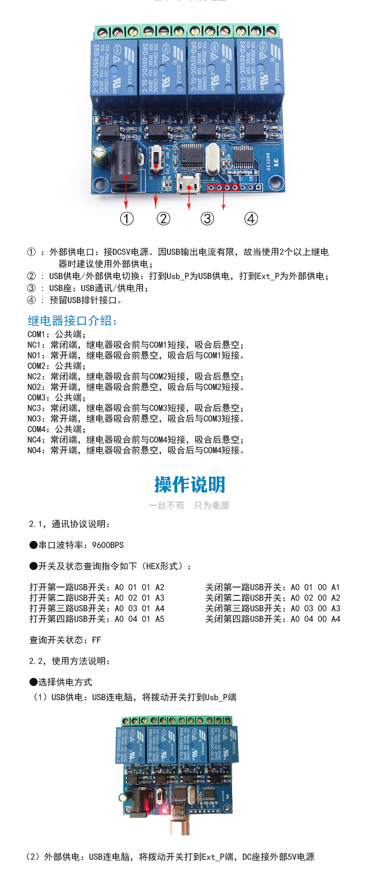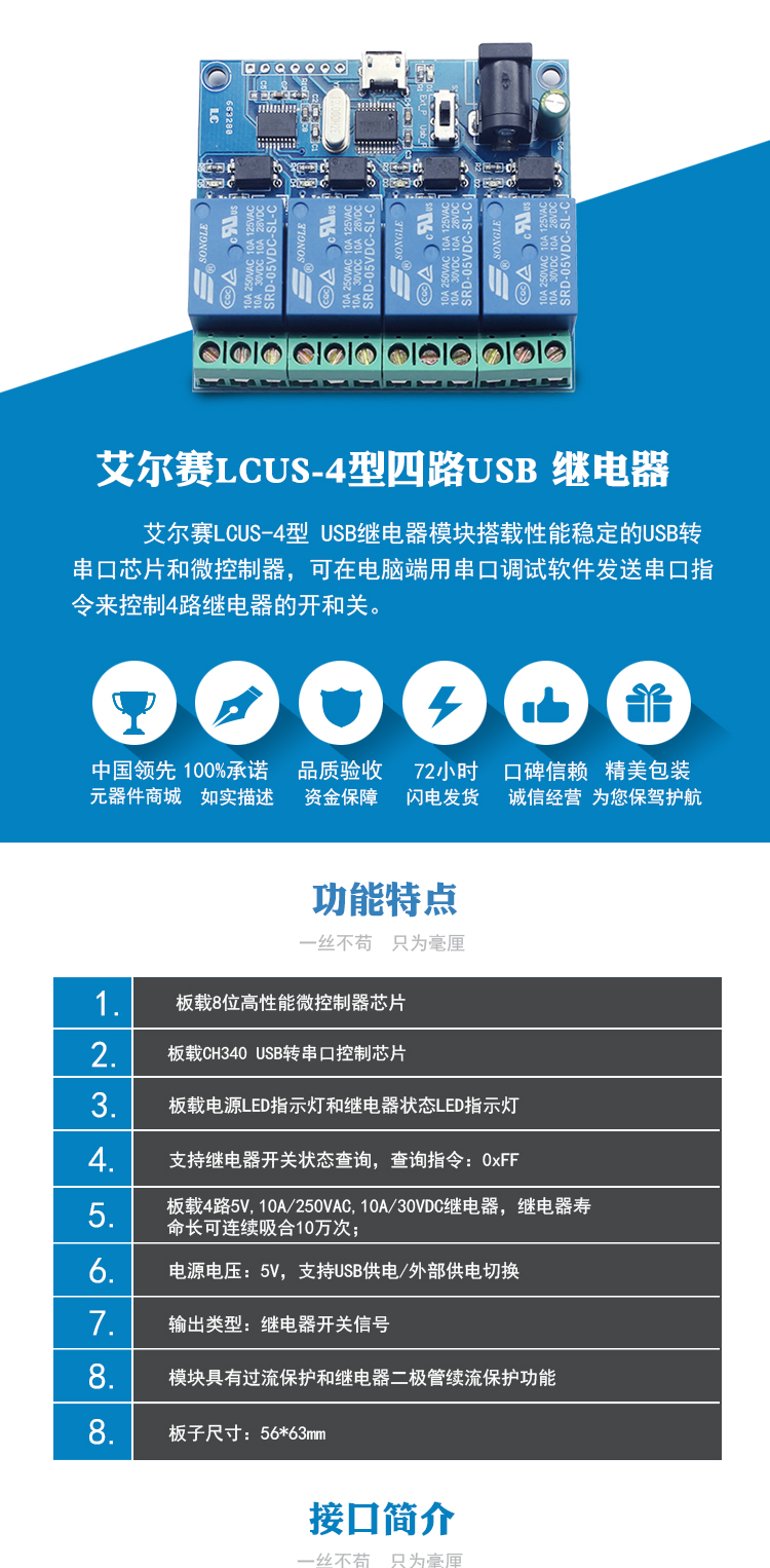 LCUS-4型 四路 4路 USB继电器模块 USB智能控制开关 USB电脑开关