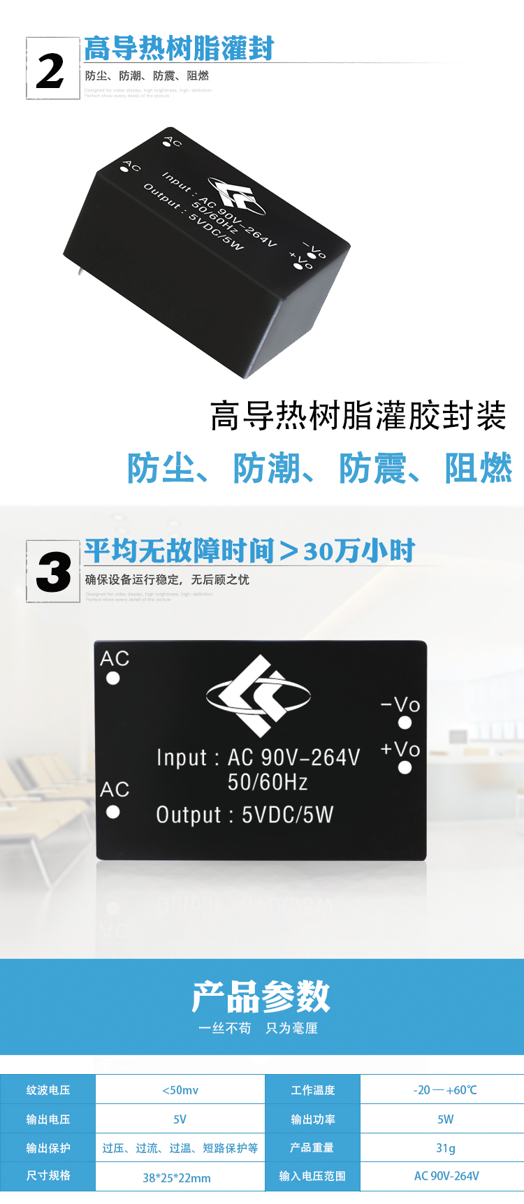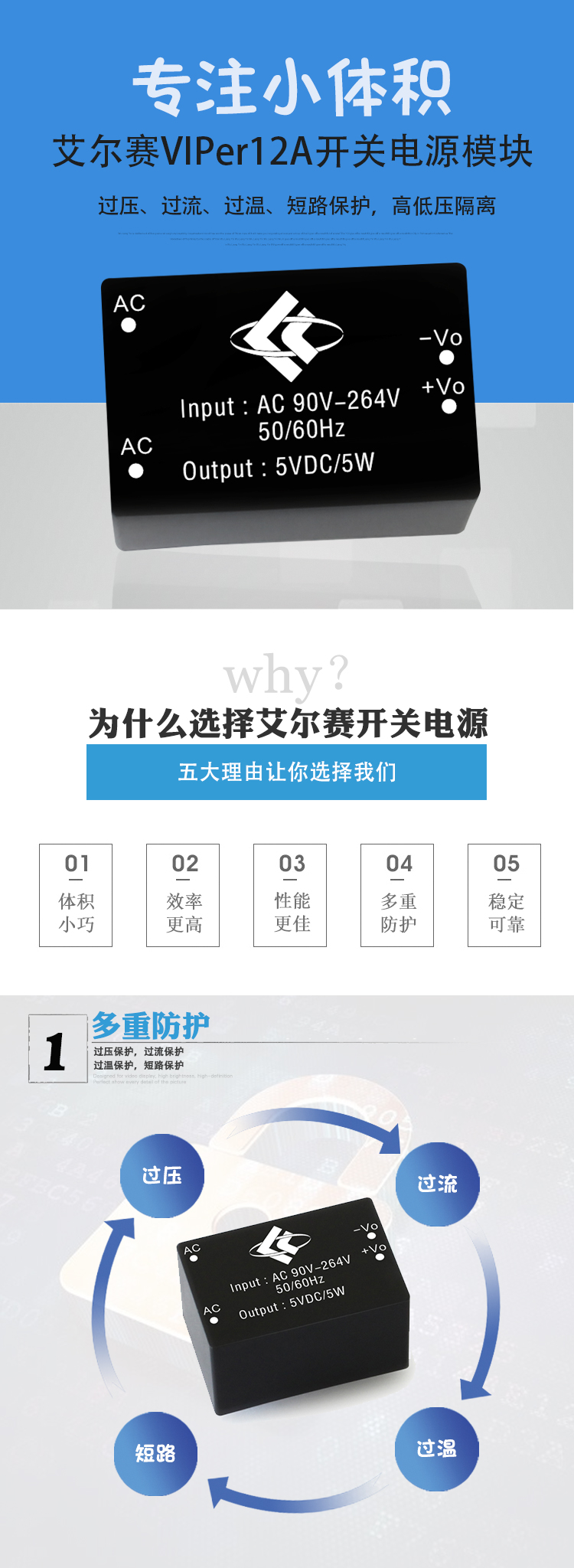 AC-DC隔离电源模块220v转5v、5w智能家居开关 降压电源模块