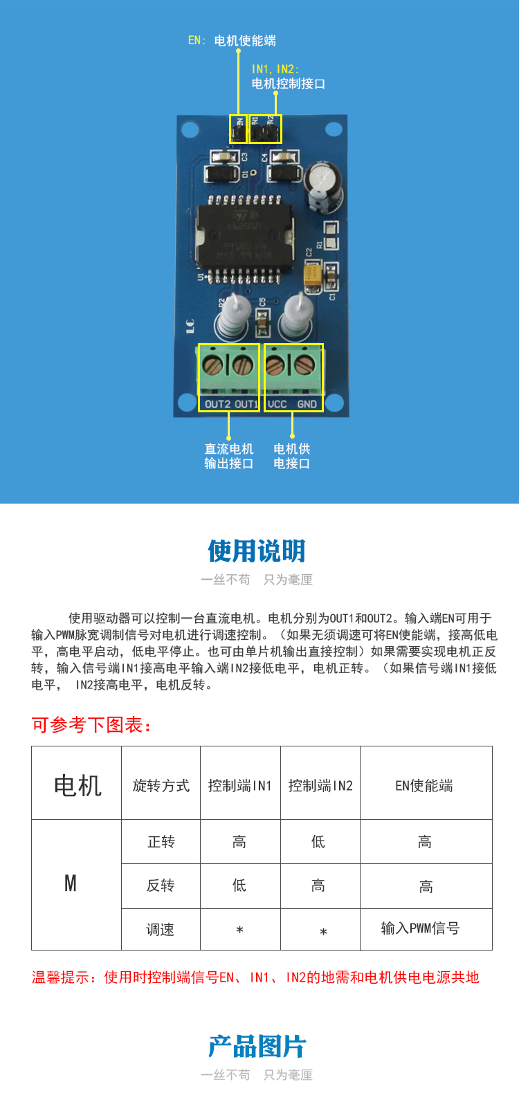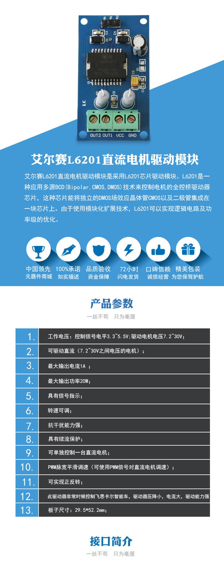 单片机直流电机控制模块 直流电机驱动控制 L6201驱动模块