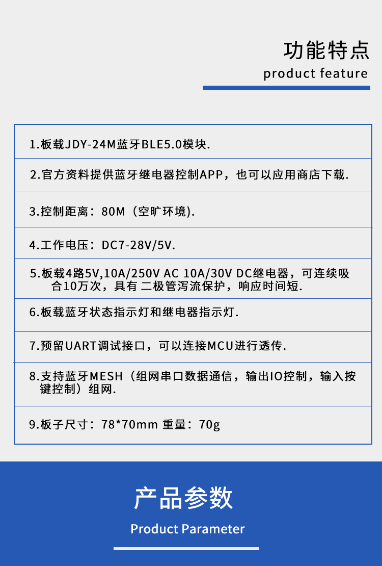 4路蓝牙5.0继电器 BLE蓝牙 蓝牙组网 MESH组网 手机APP遥控开关