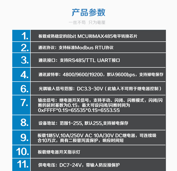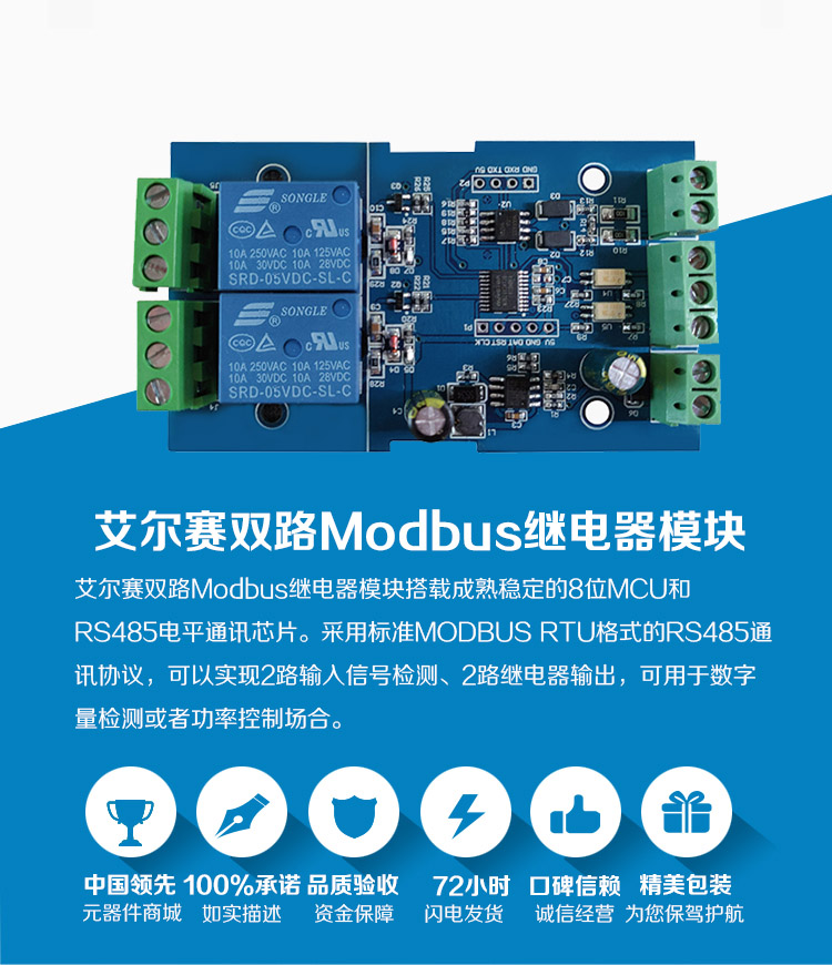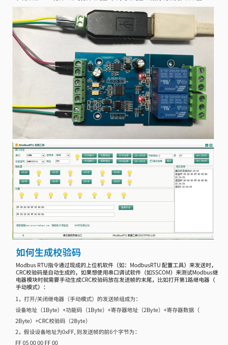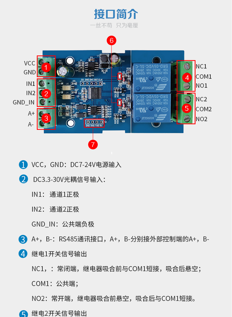 Modbus-Rtu 2路12V继电器模块开关量输入输出RS485/TTL通讯