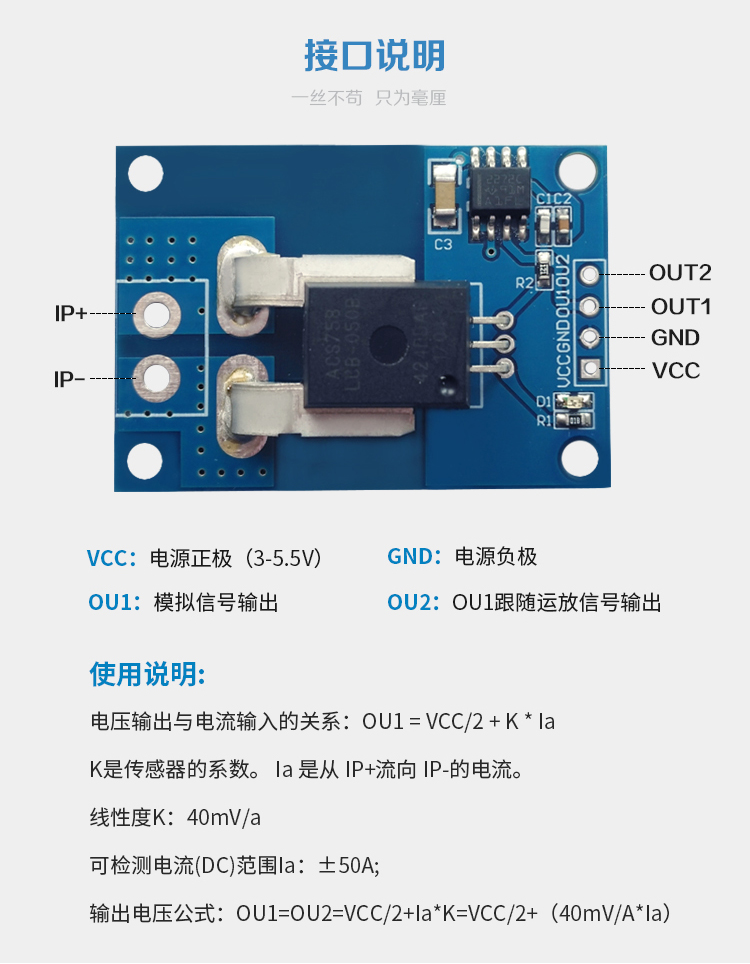 ACS758LCB-050B-PFF-T 线性 电流传感器 霍尔电流模块