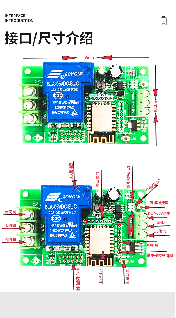 ESP8266单路30A继电器开发板