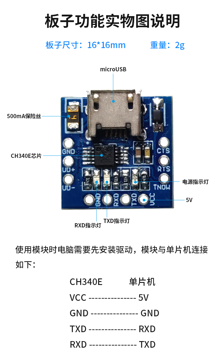 CH340E_MINI_TTL串口模块