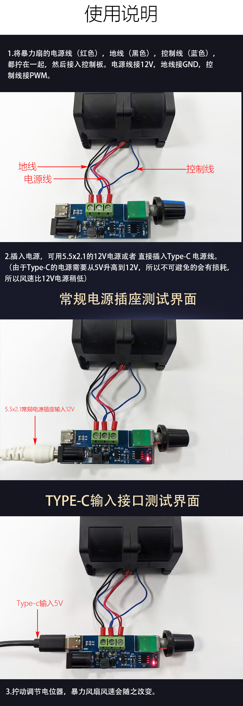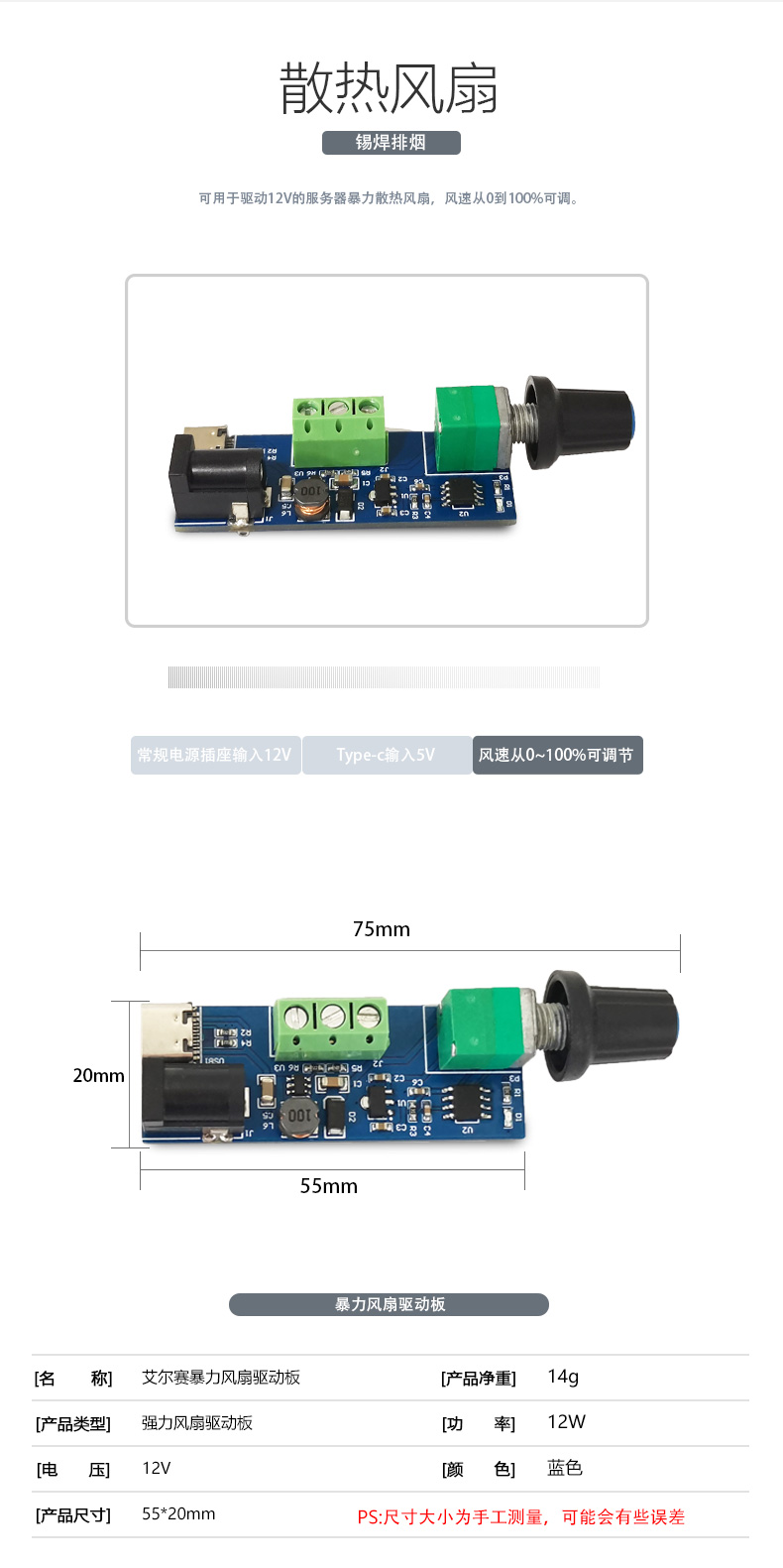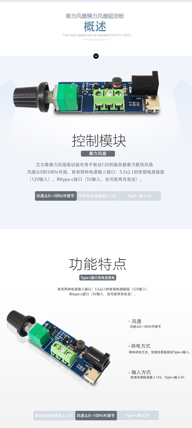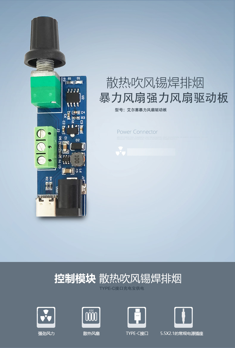 暴力风扇 强力风扇驱动板 控制模块 散热吹风锡焊排烟