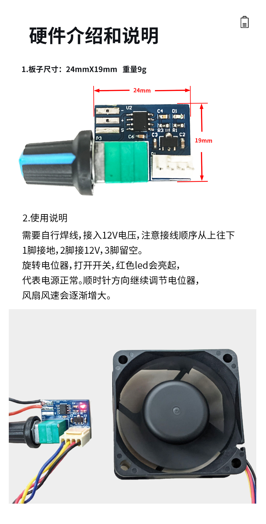 电脑机箱风扇 风扇调速器 PWM调速控制器 12V单路 4针小功率 静音