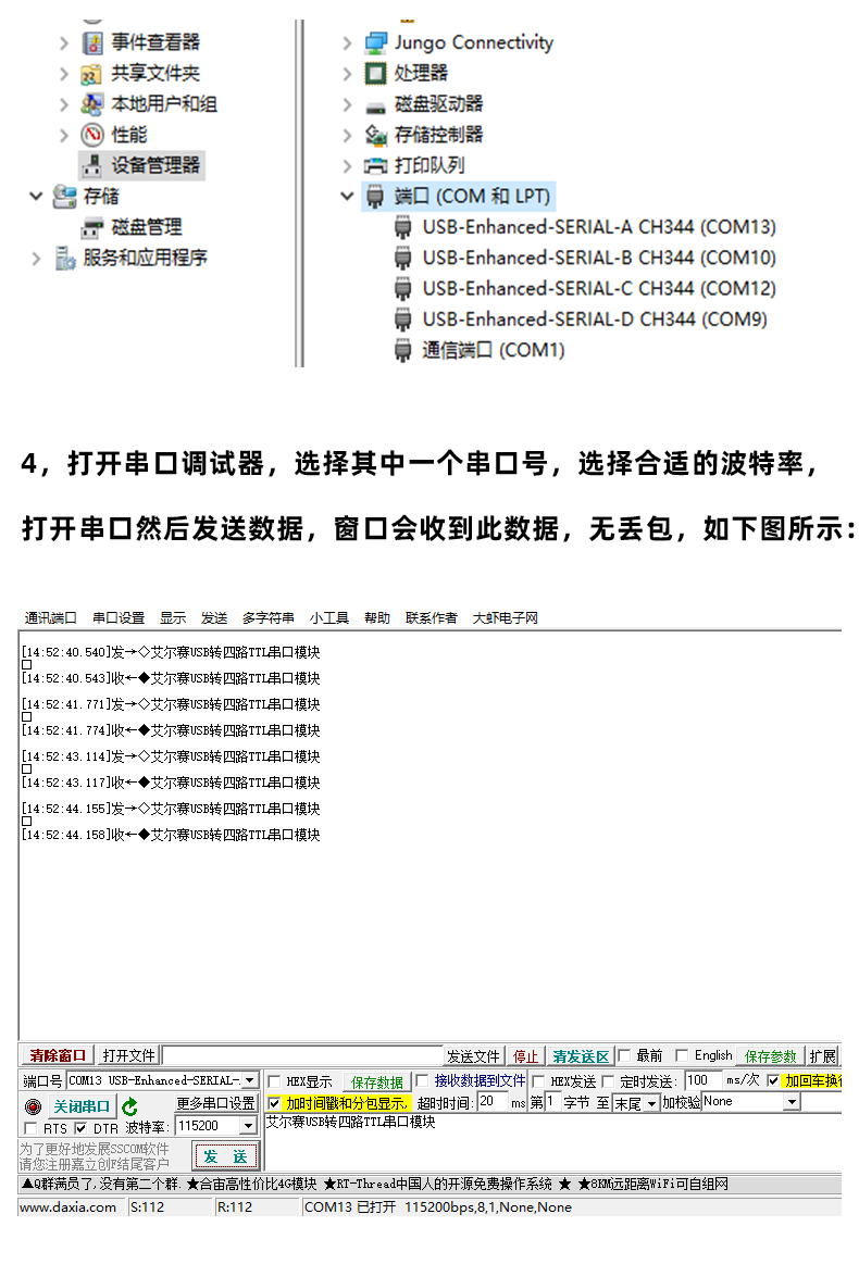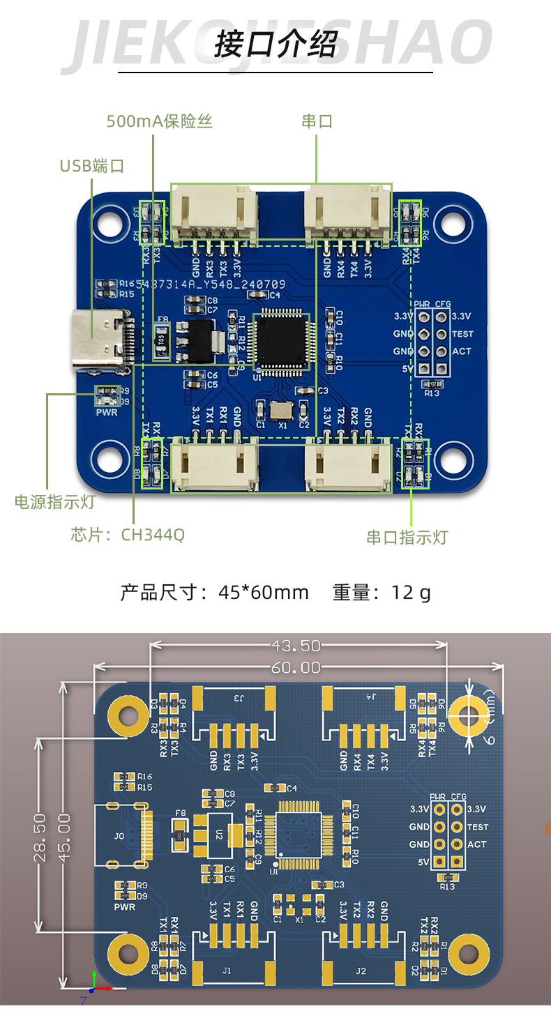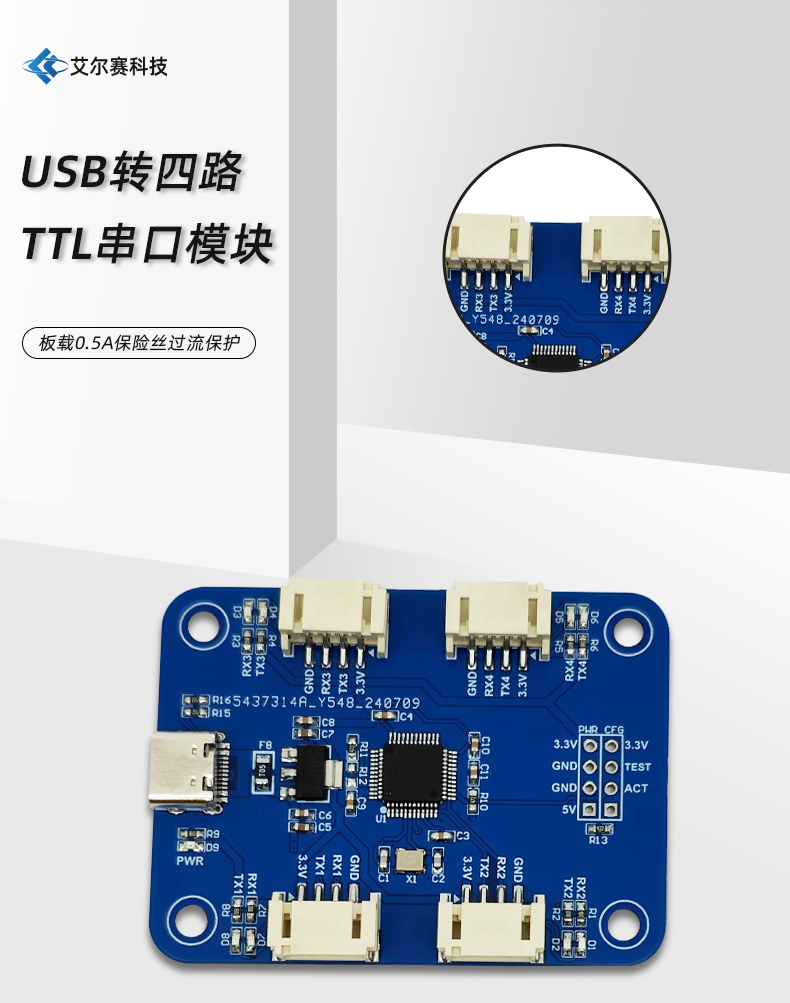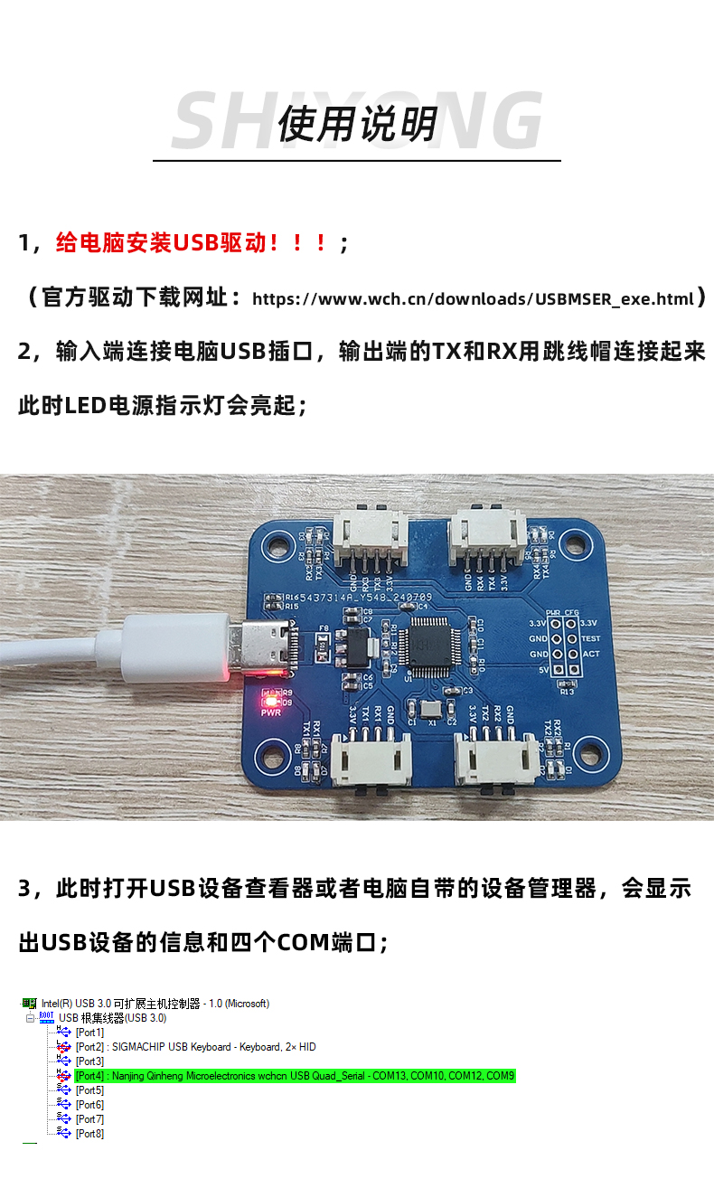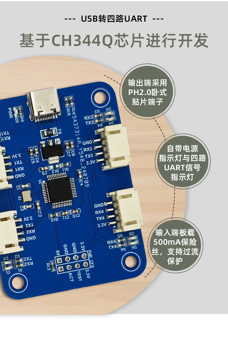 CH344Q USB转四路TTL串口模块 4路串口UART 多路串口扩展模块
