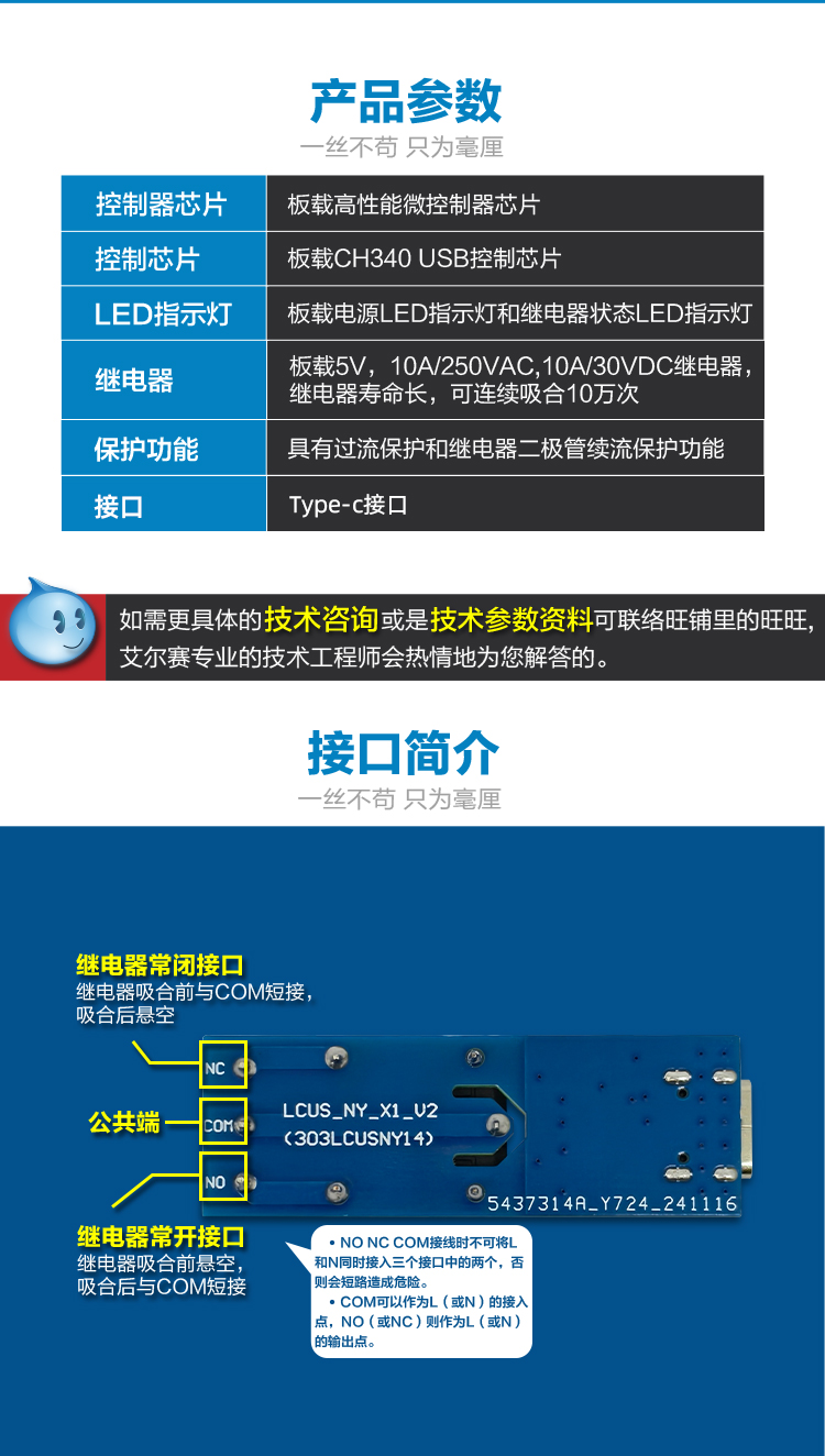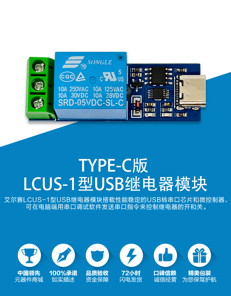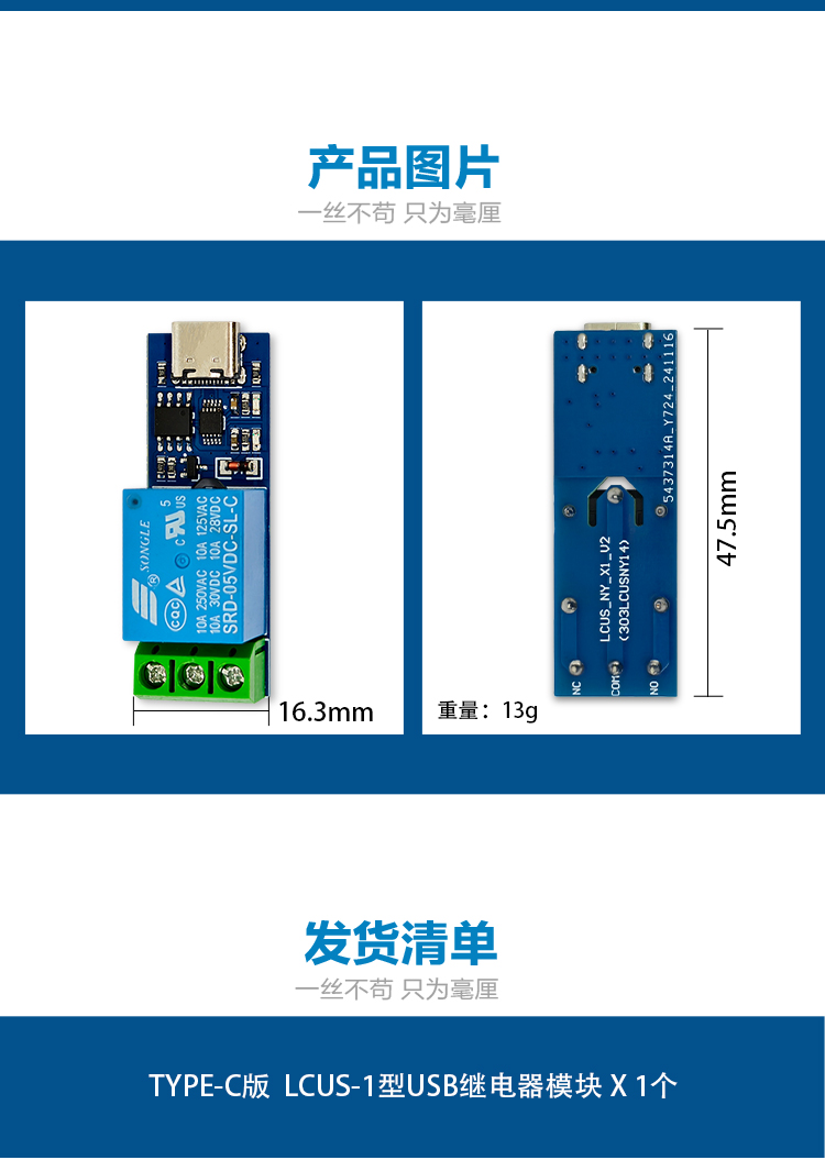 TYPE-C版 LCUS-1型 直流USB继电器模块 电脑串口控制开关