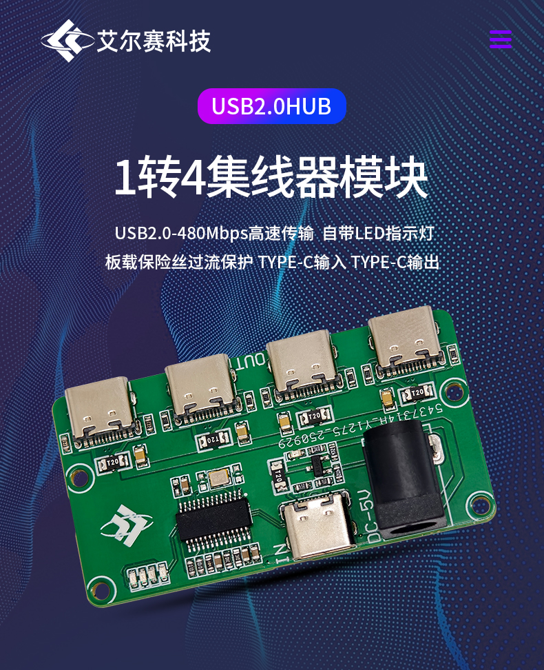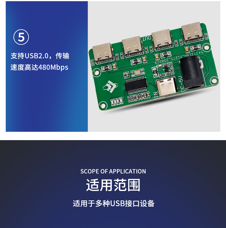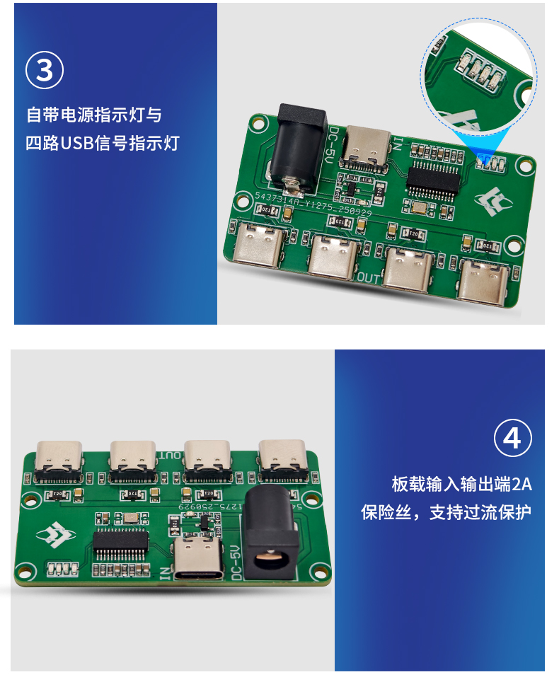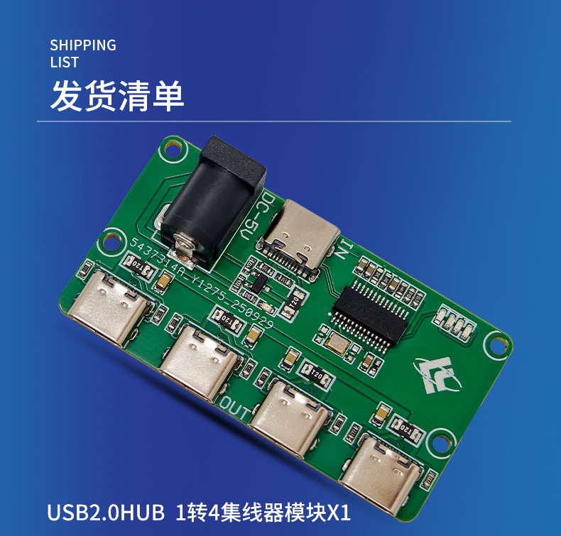 USB2.0HUB模块 1转4口 TYPE-C输入 TYPE-C输出