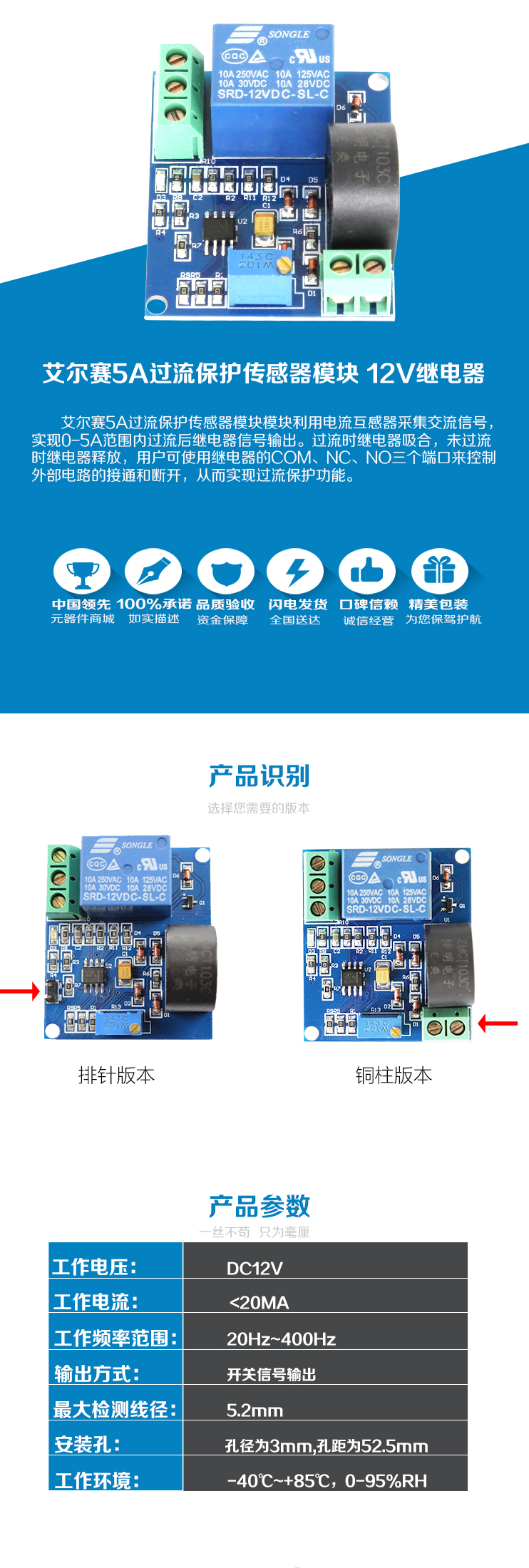 艾尔赛12A过流保护传感器模块