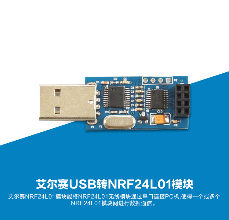 USB转NRF24L01模块 USB无线串口模块 透传 数传通信采集模块