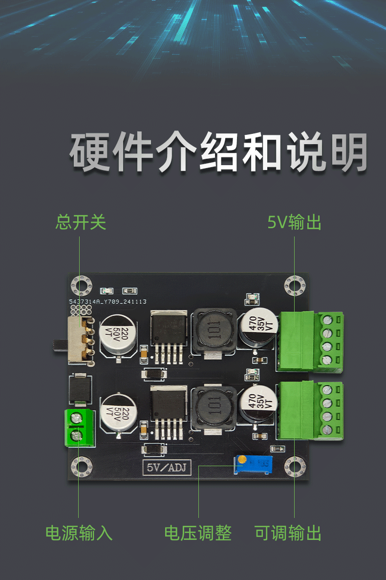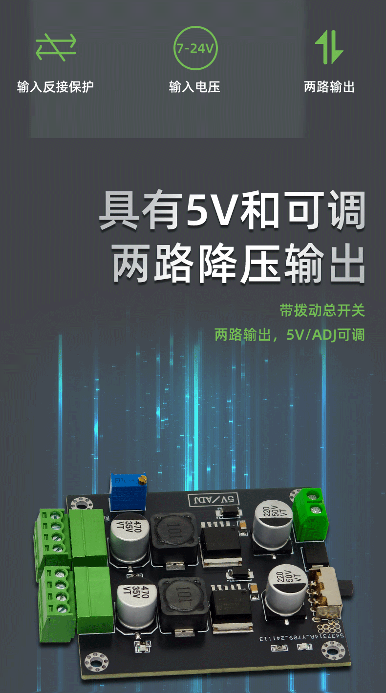LM2596 2路 5V+可调 DC-DC 直流转换器 降压电路板