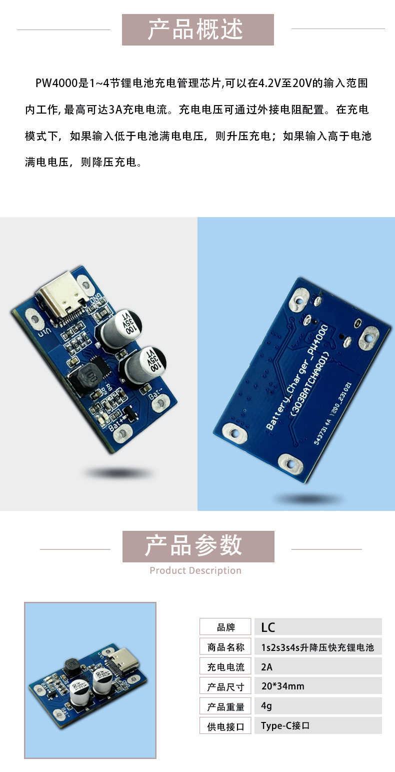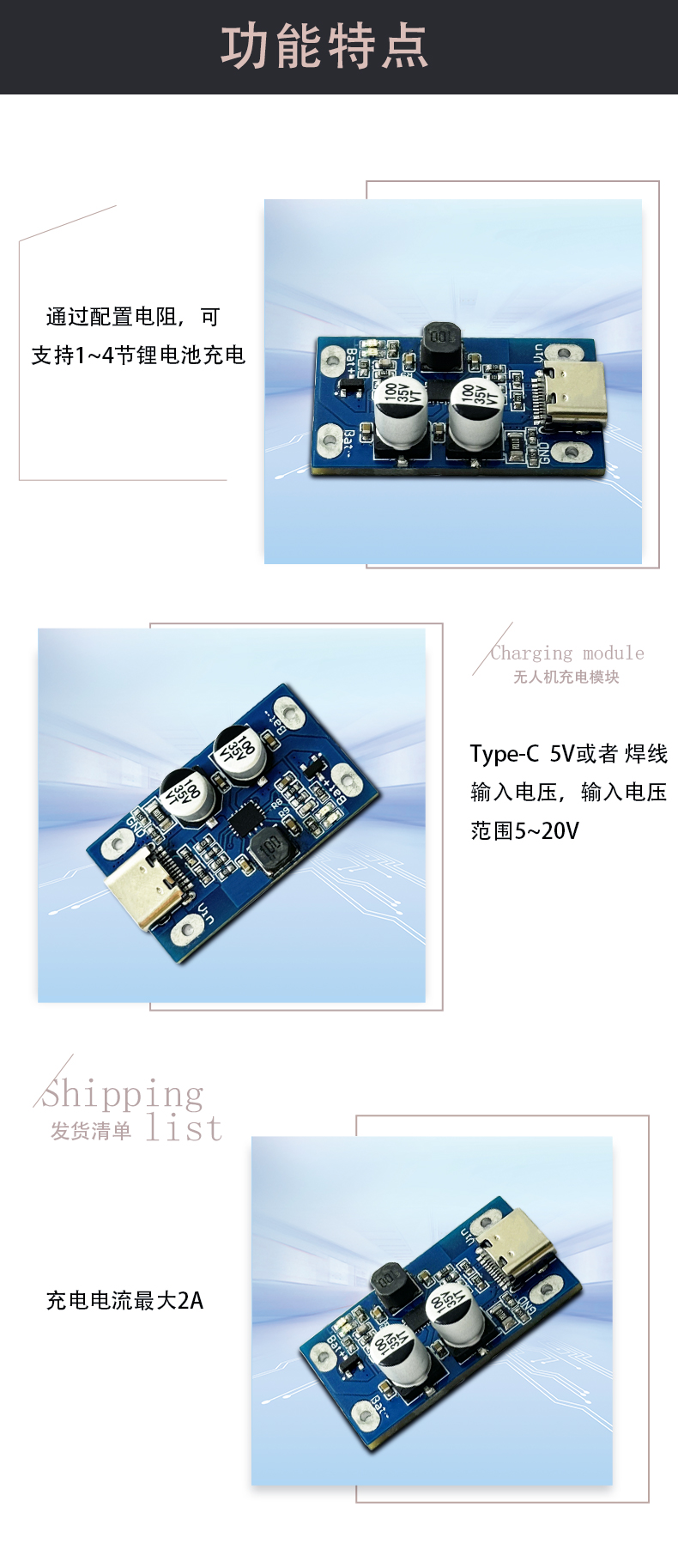 1s2s3s4s 升降压快充锂电池 无人机充电模块 Type-C输入