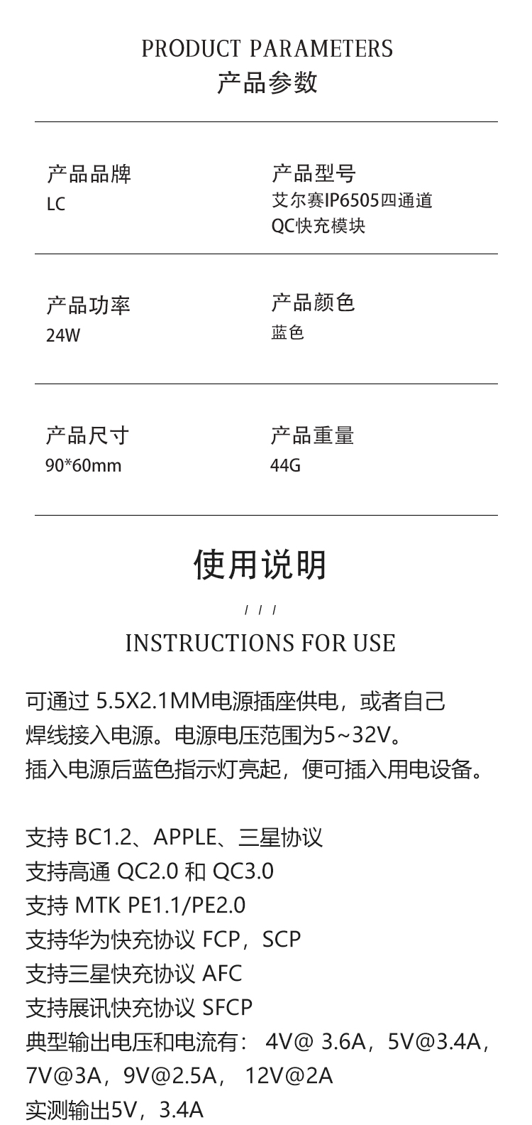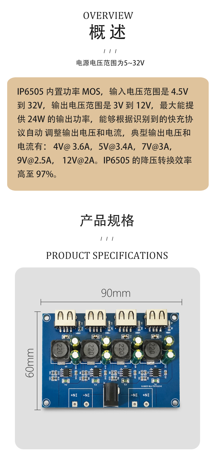 IP6505四通道QC快充模块QC3.0 2.0 华为FCP