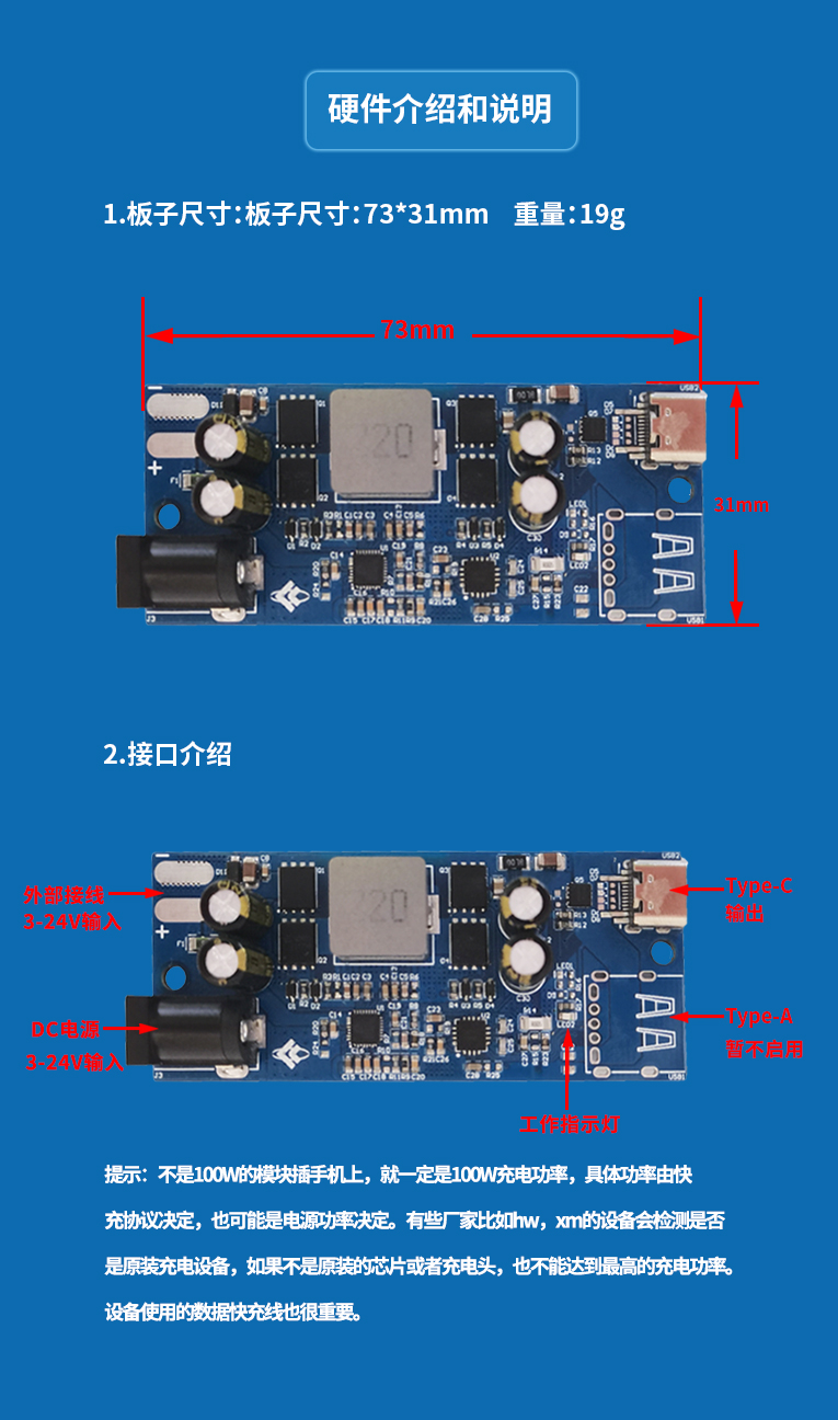 全协议快充模块SW2303 PL5501快充100w升降压多功能 PD快充