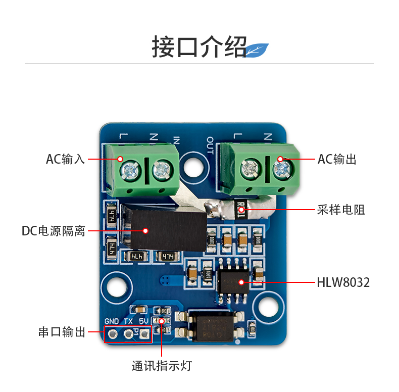 HLW8032交流电压电流采集串口输出模块