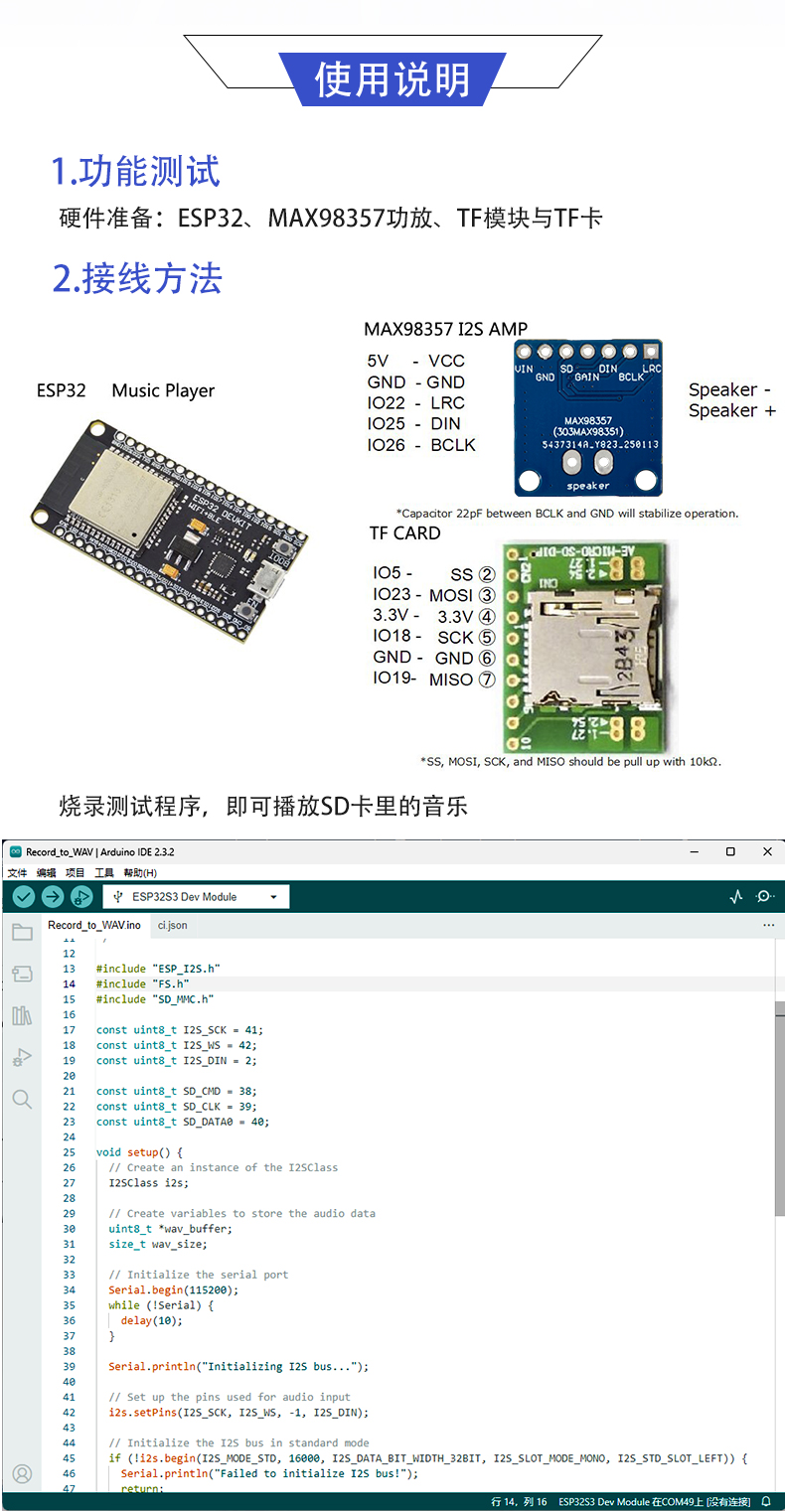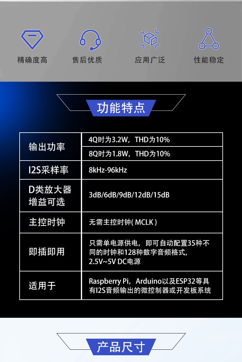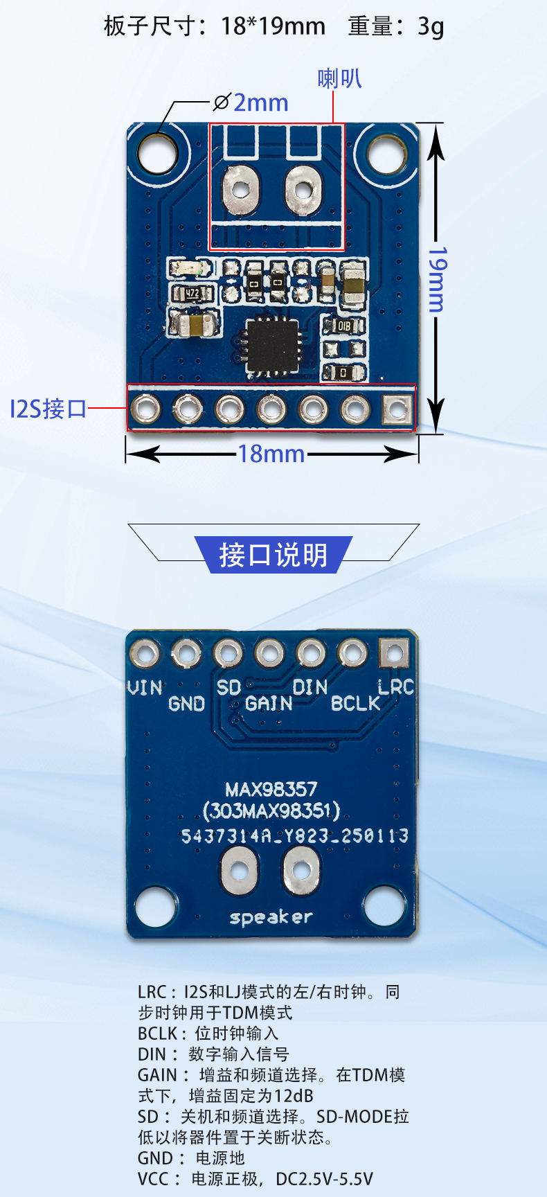 MAX98357功放模块 I2S协议 D类音频放大器模块