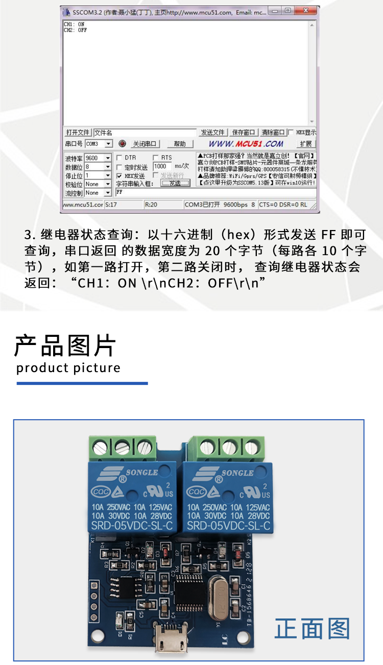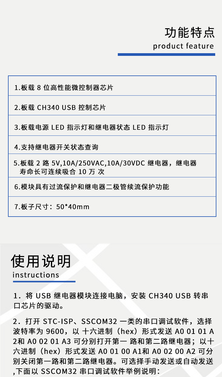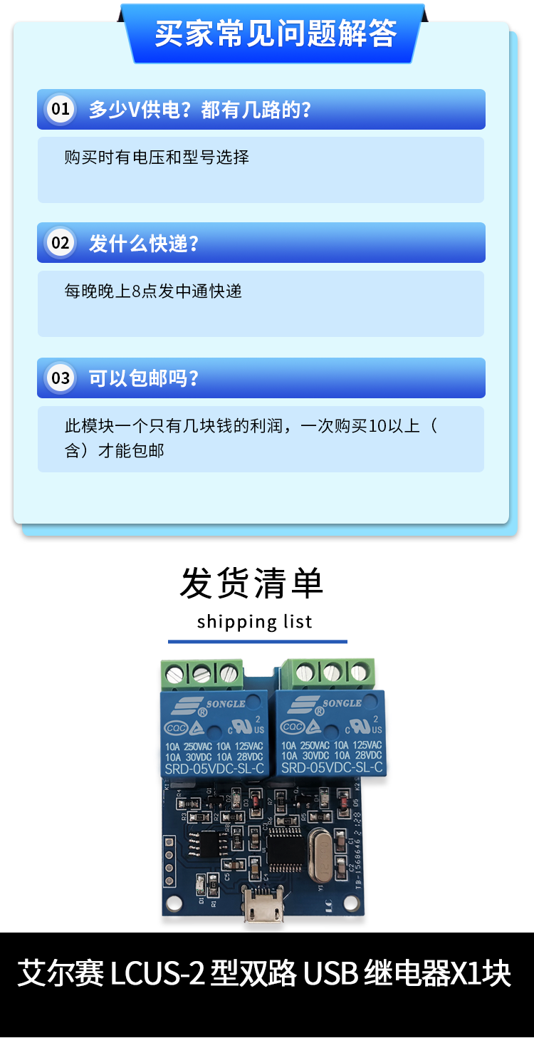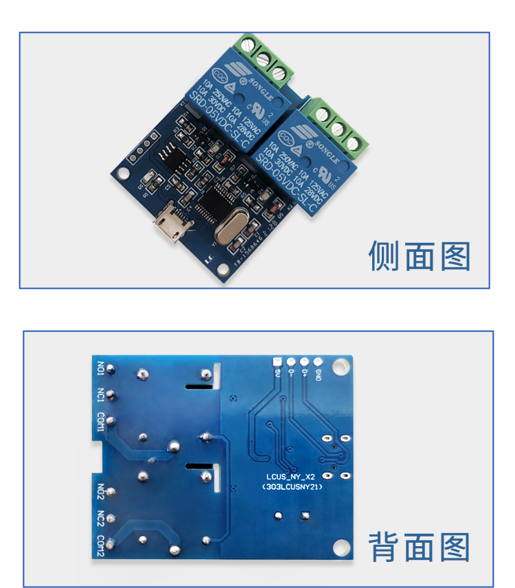 艾尔赛LCUS-2 型双路2 路USB 继电器模块 USB智能控制开关