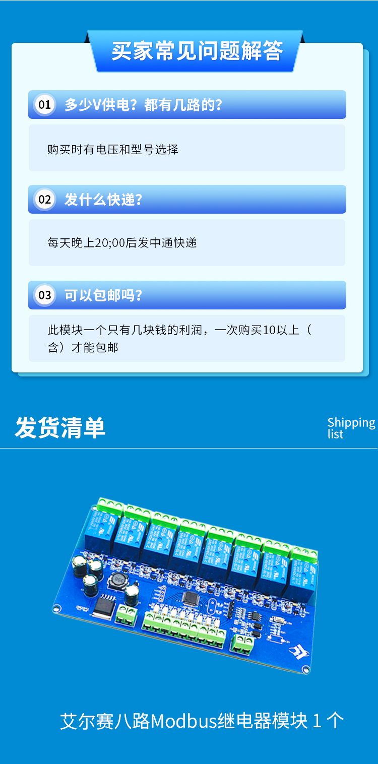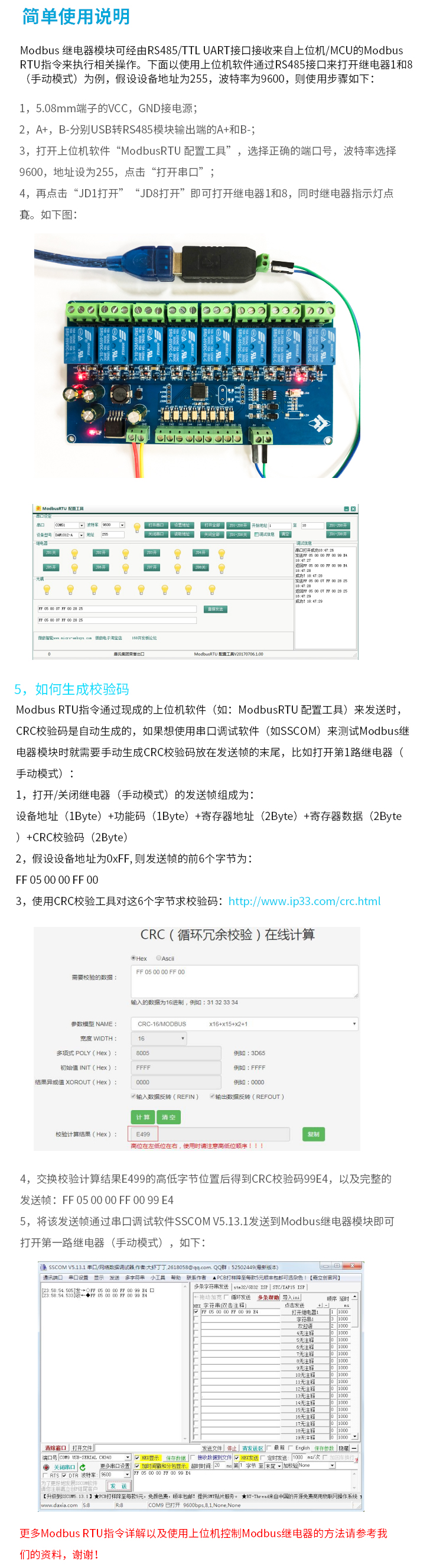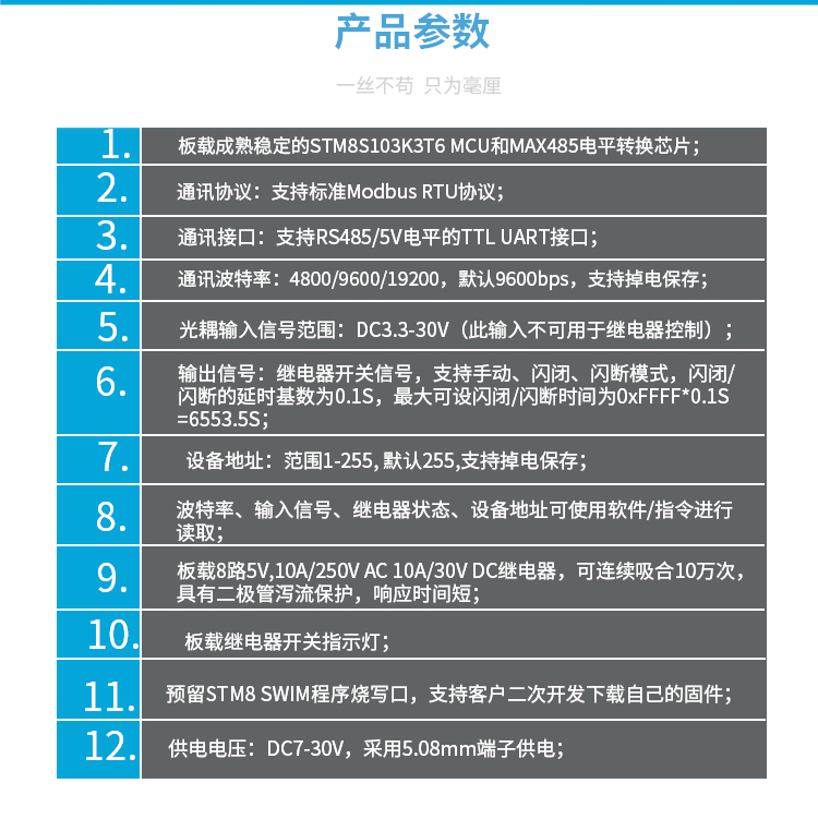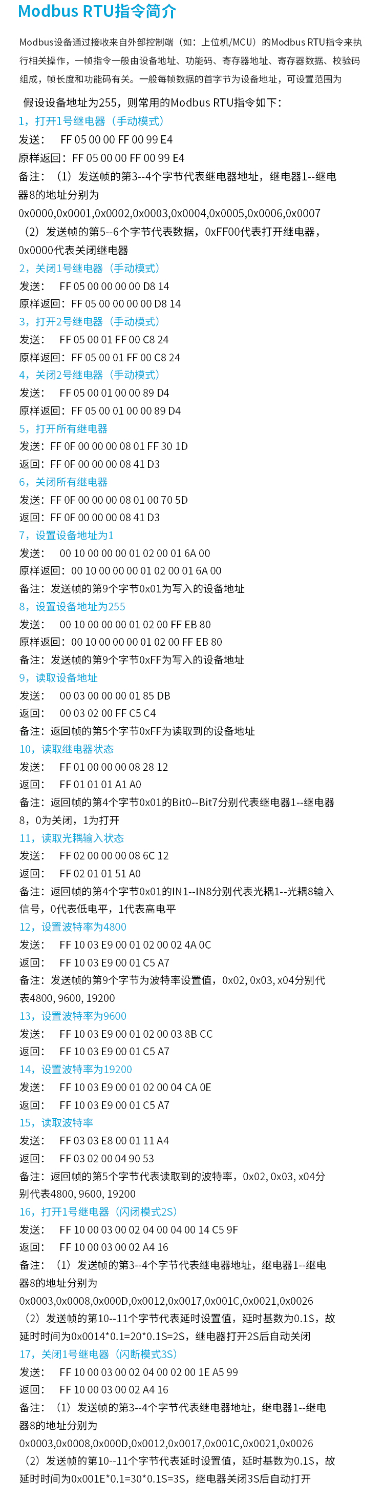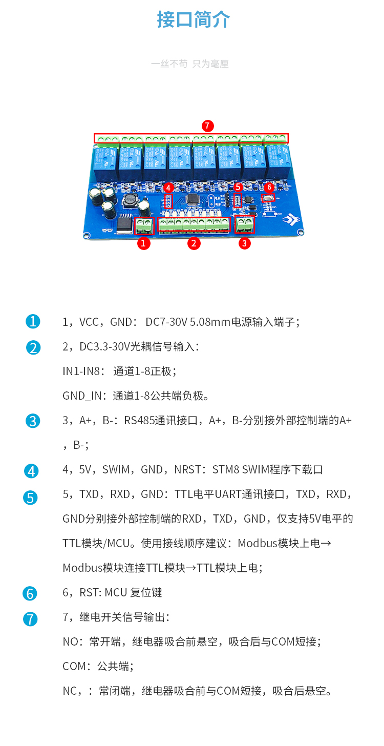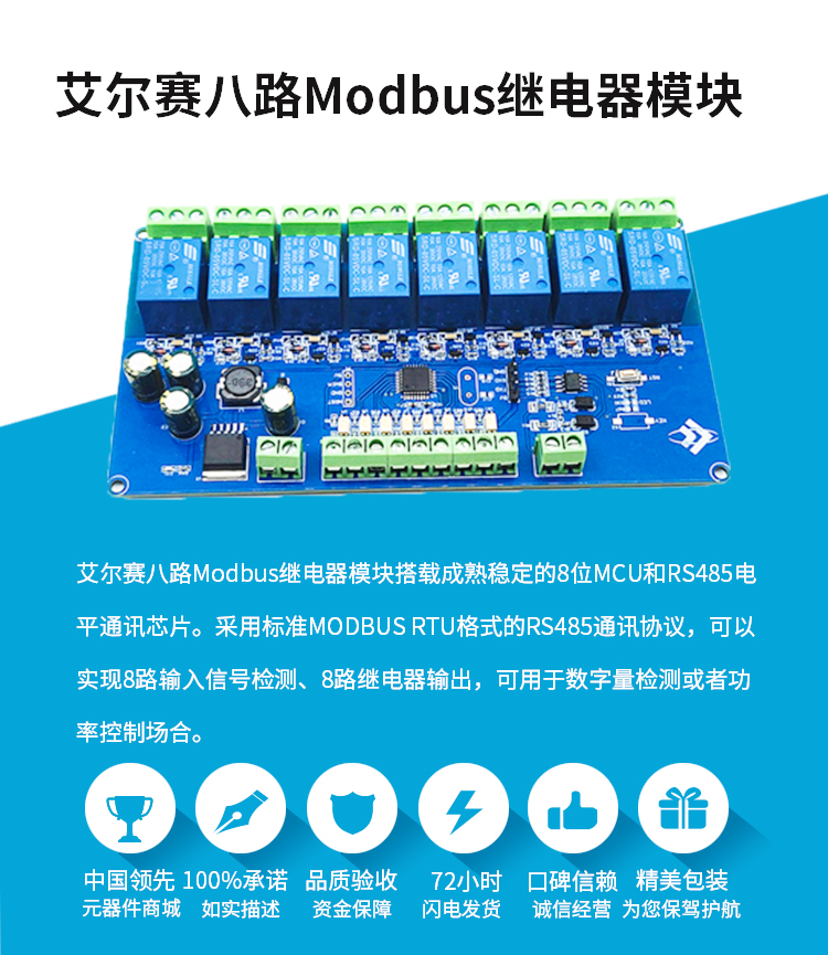 Modbus RTU 八路继电器模块 RS485/TTL UART 8路输入 8路输出