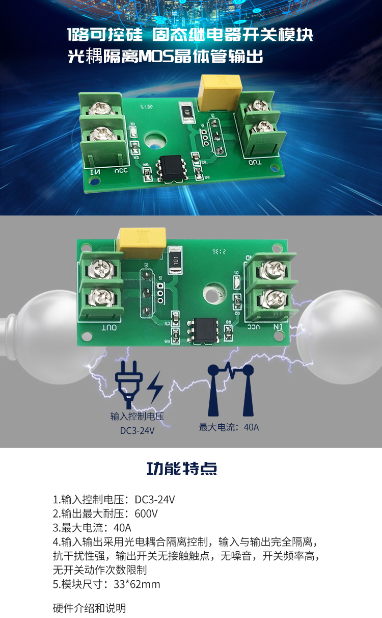 1路可控硅 固态继电器开关模块 光耦隔离MOS晶体管输出