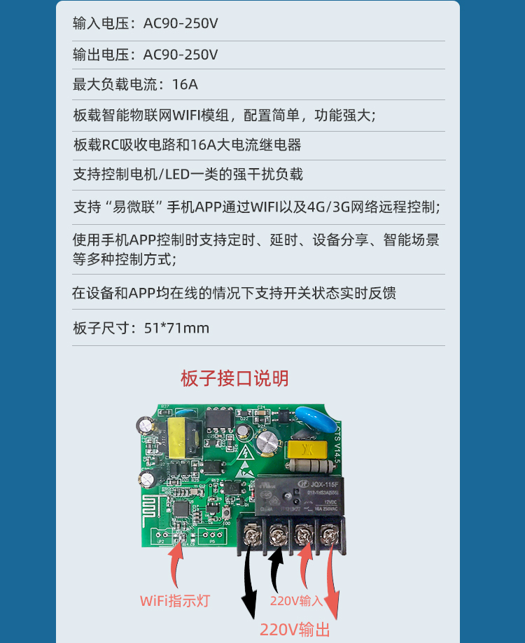易微联 智能家居 16A手机APP远程遥控智能WIFI开关 继电器模块