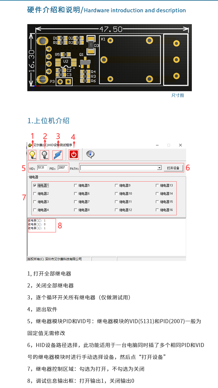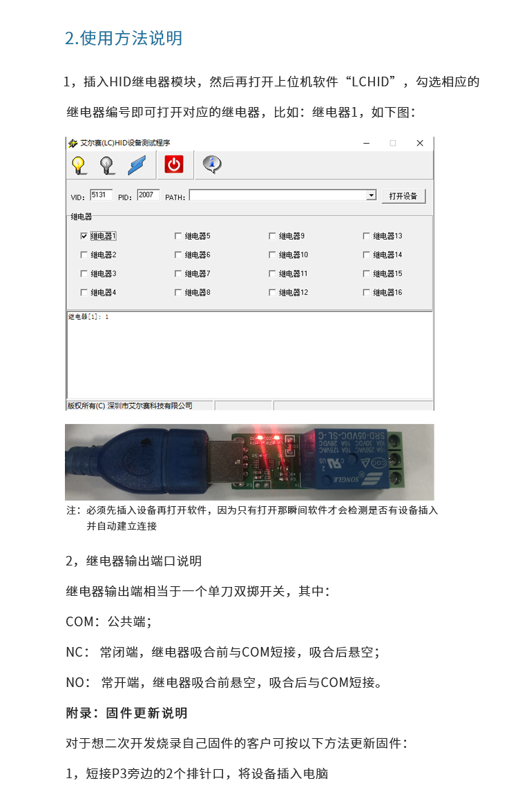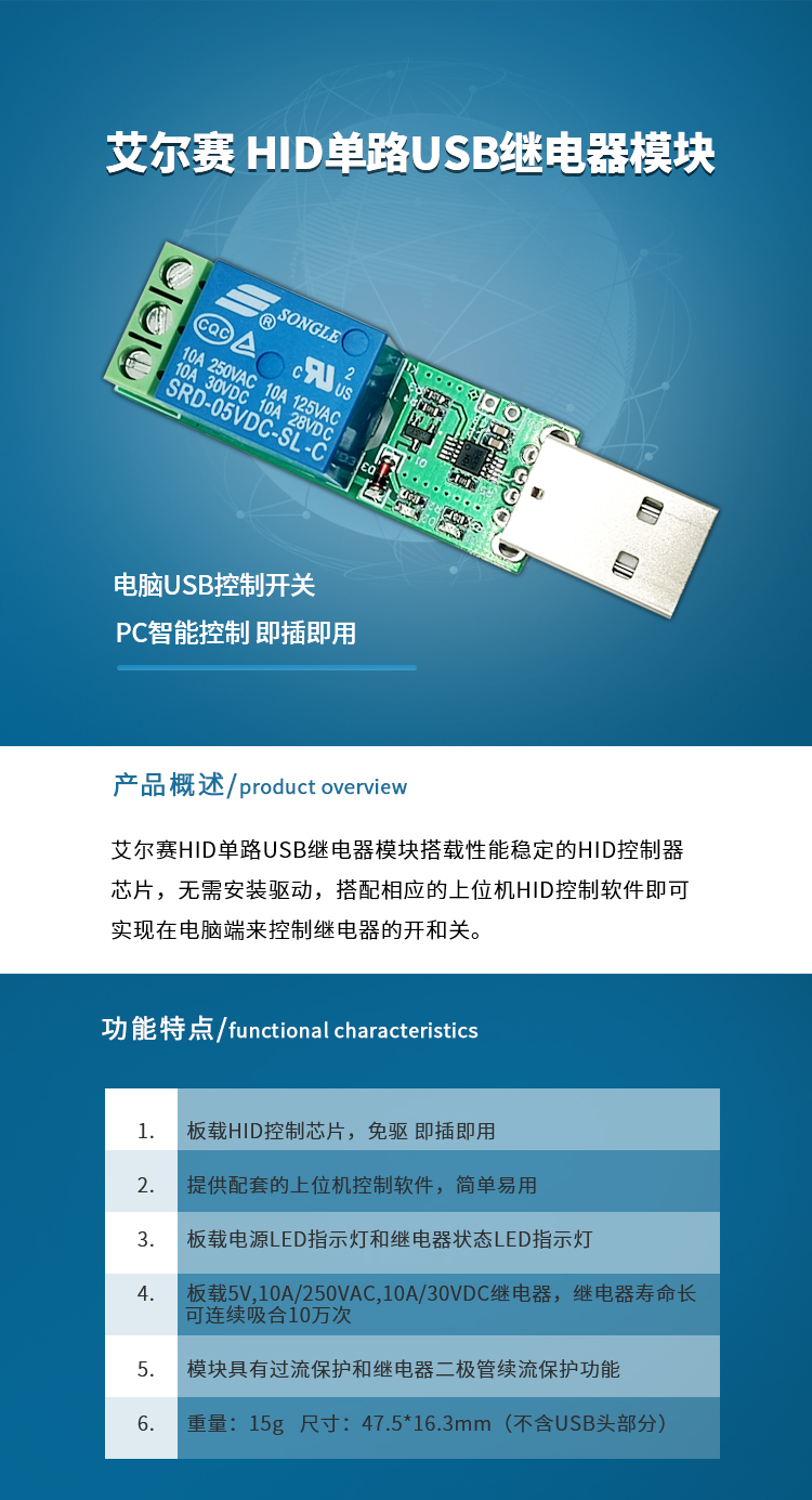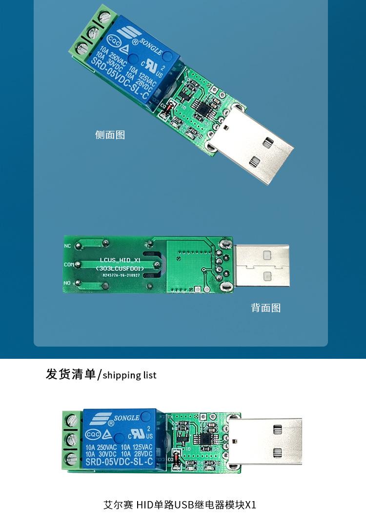 艾尔赛 HID单路USB继电器模块