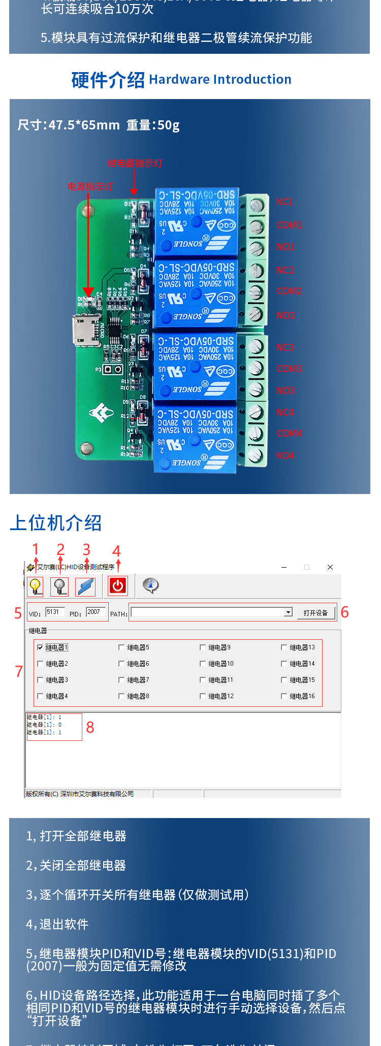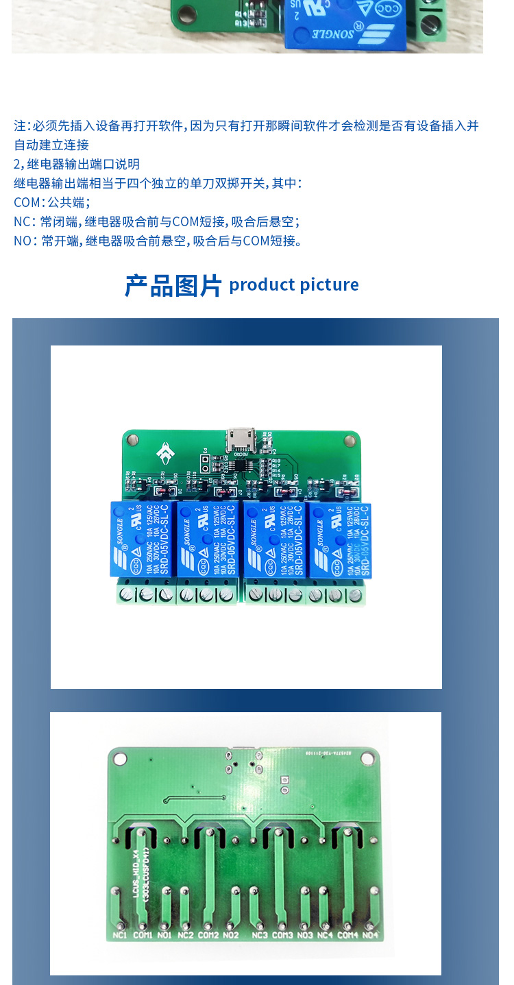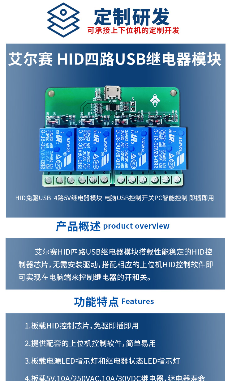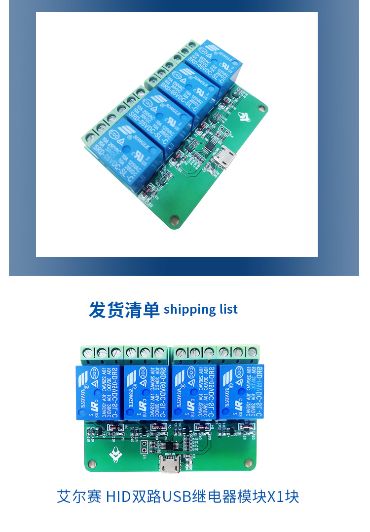 艾尔赛HID四路USB继电器模块