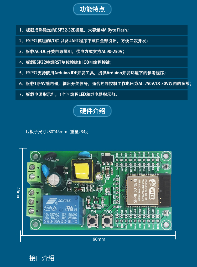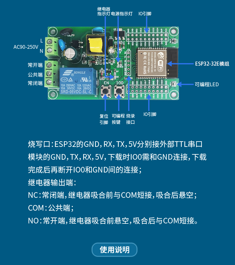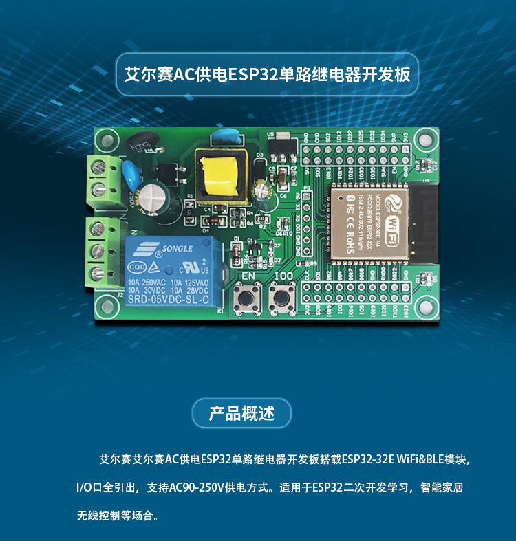 AC供电 ESP32 WIFI蓝牙BLE单路继电器模块 ESP32开发板