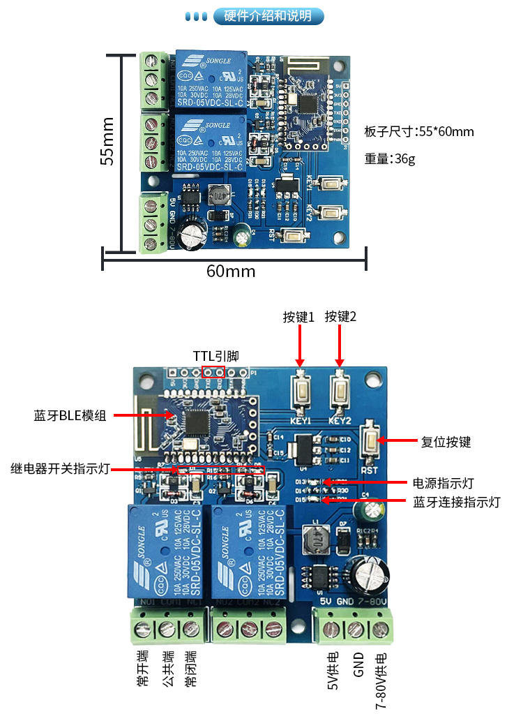 双路BLE蓝牙继电器模块
