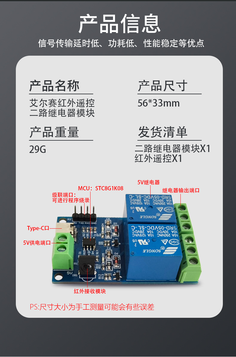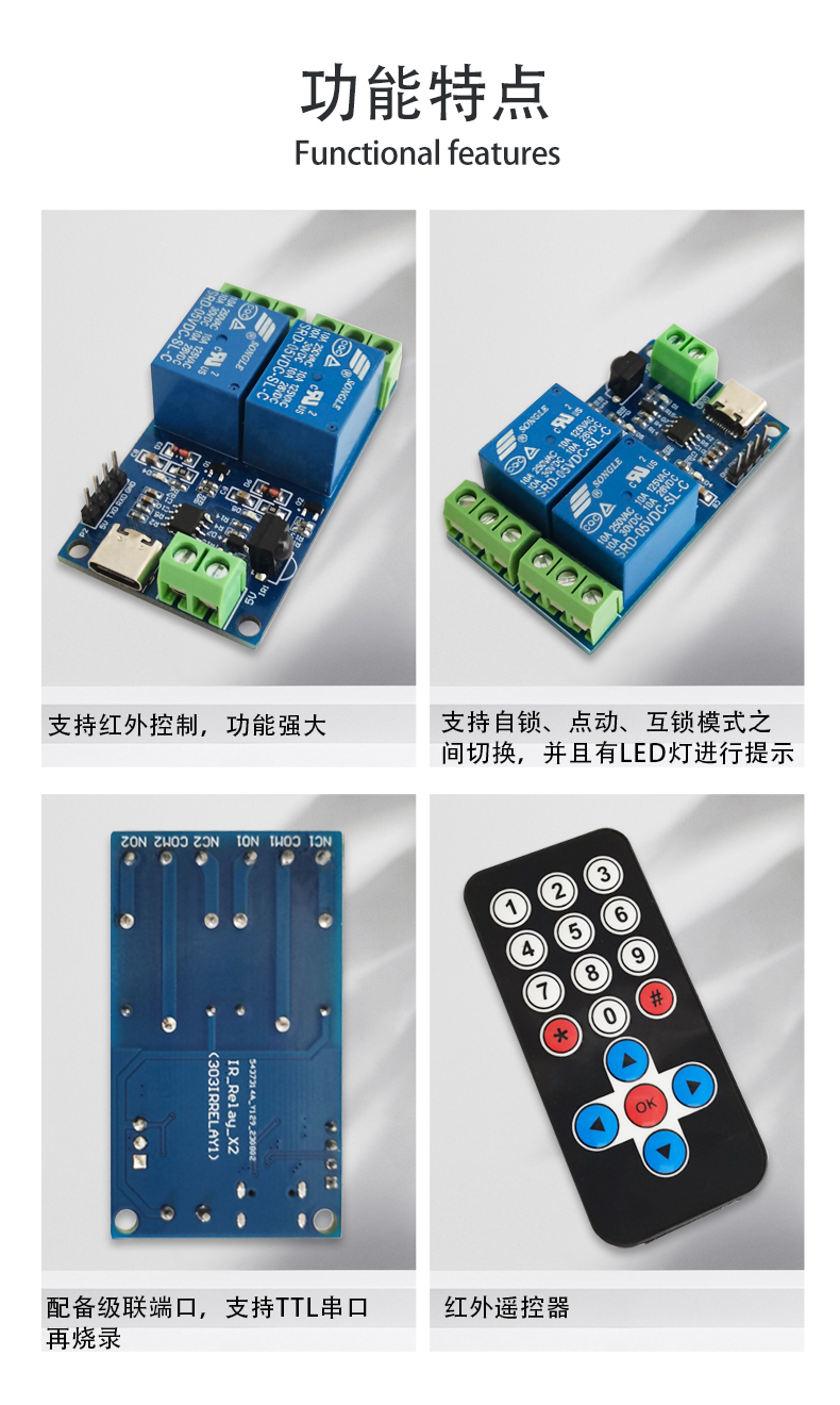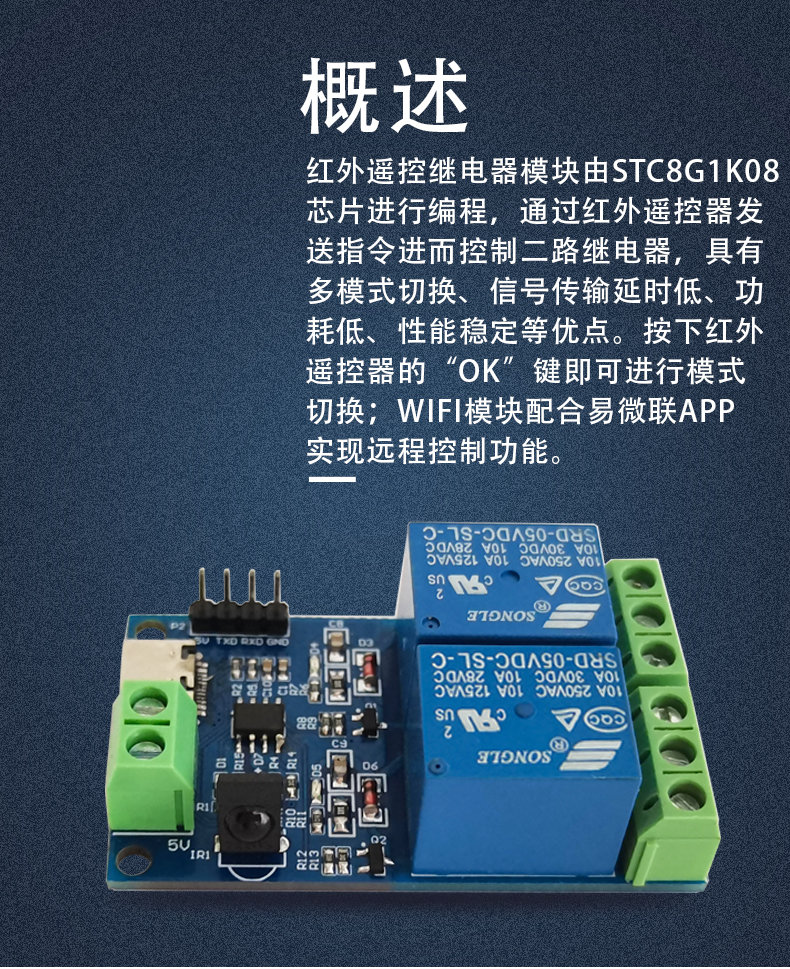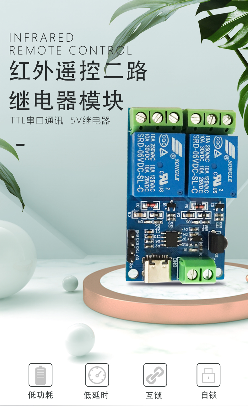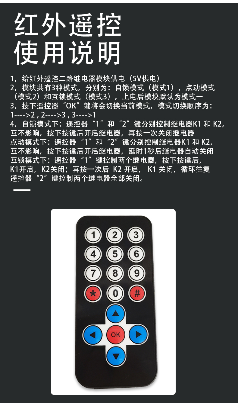 红外遥控 无线 双路继电器模块