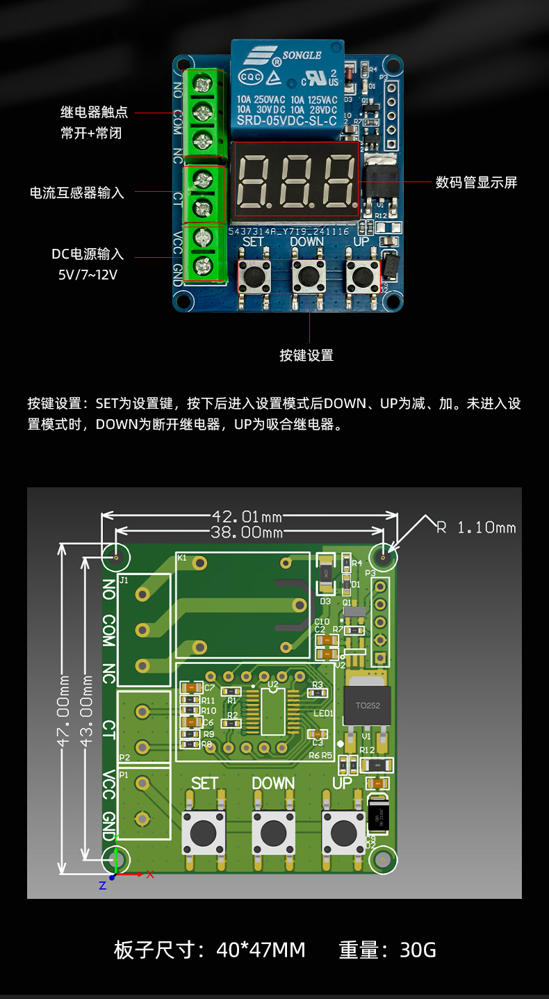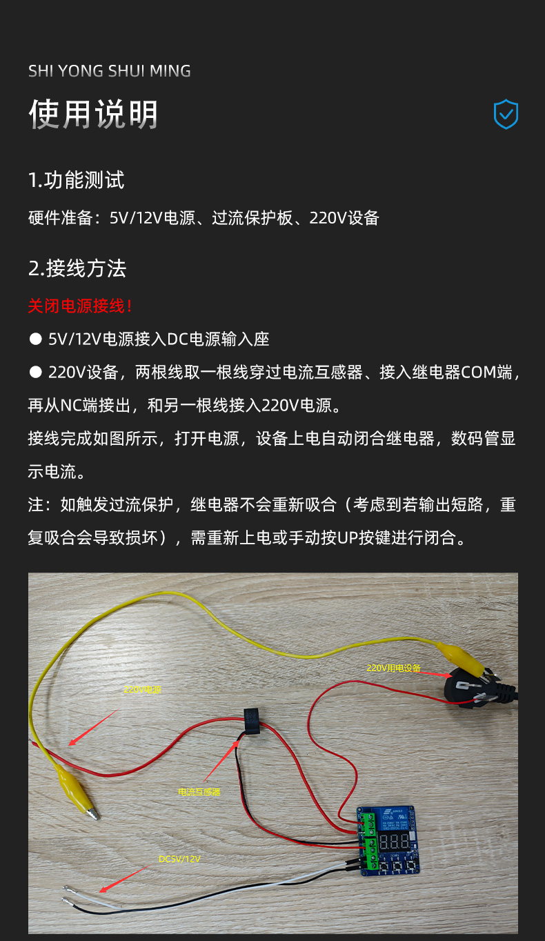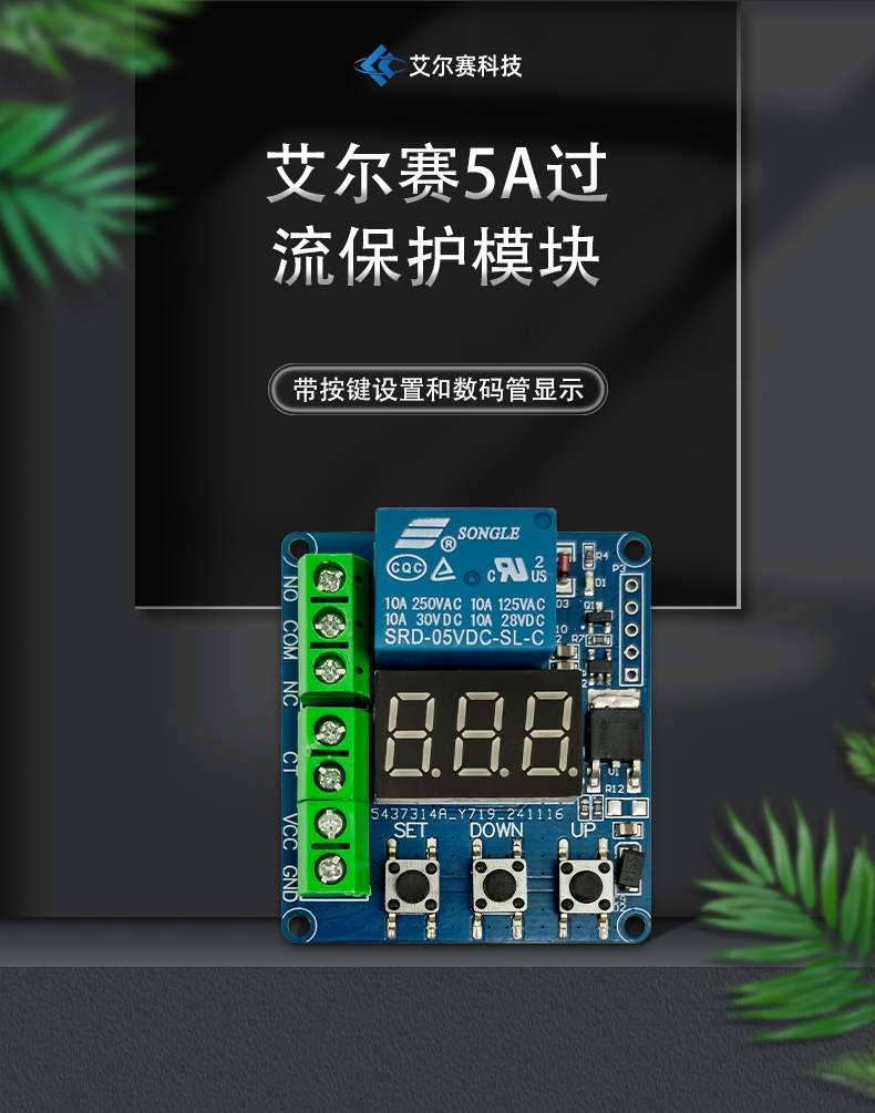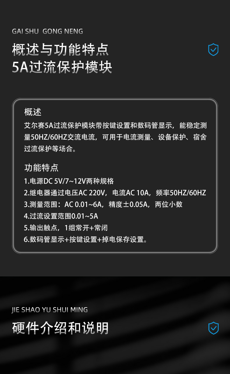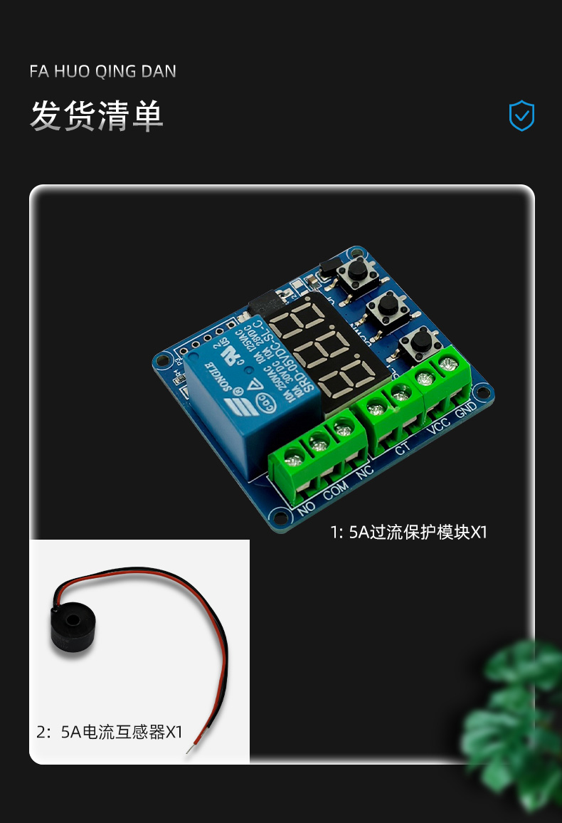 5A过流保护传感器模块 交流电流测量检测过载保护 5V 12V供电