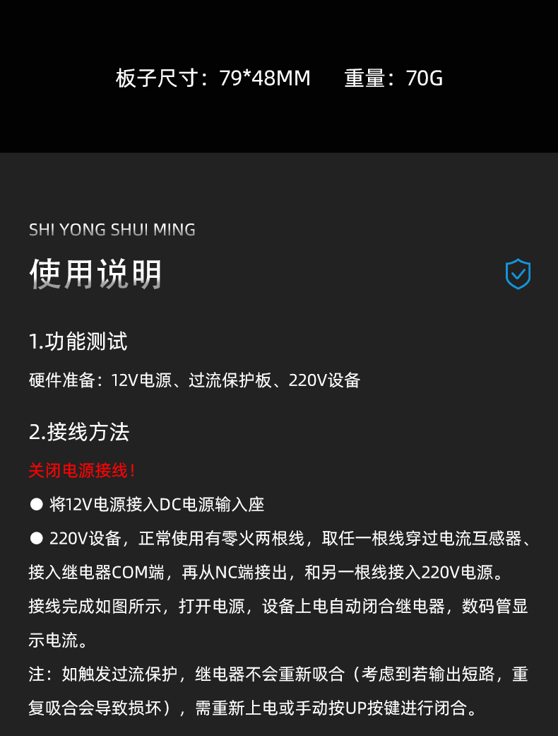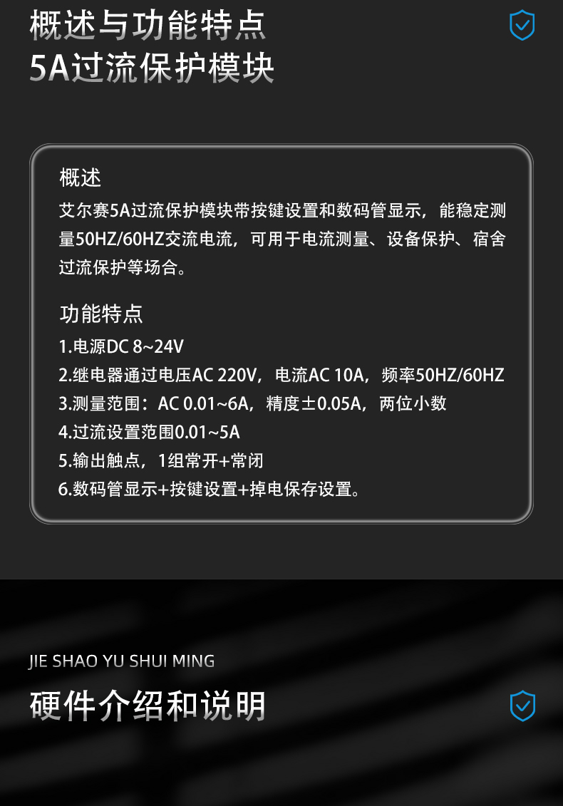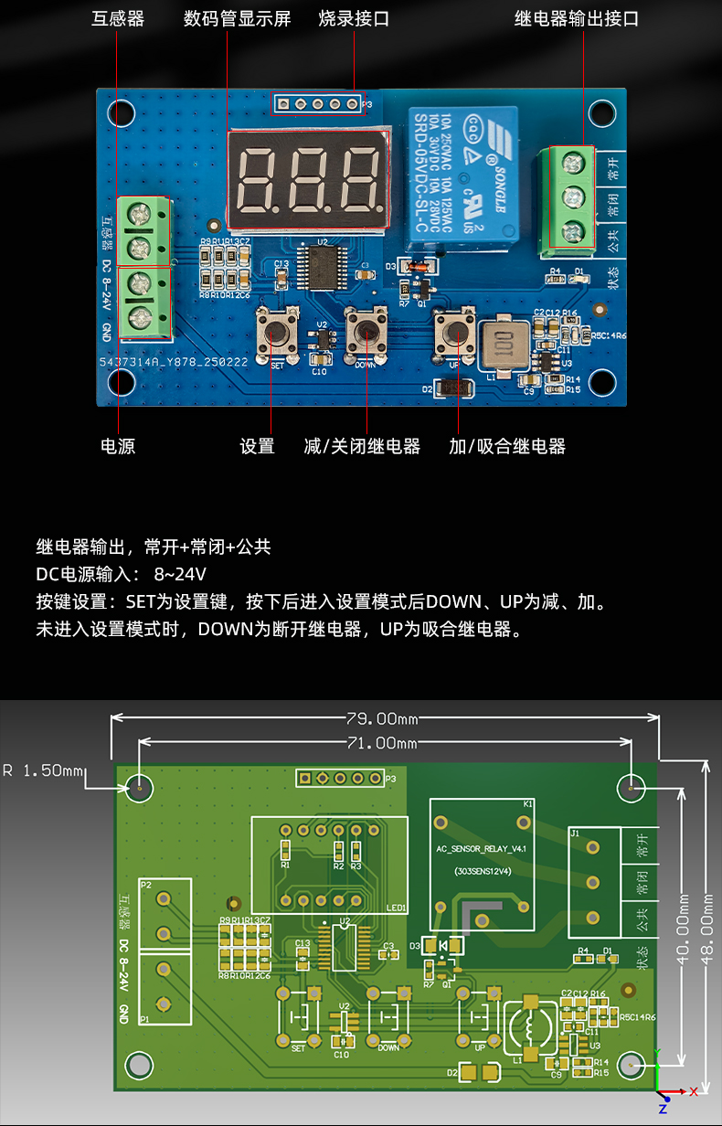 220V交流电 过流保护模块 电流有效值显示 DC8-24V供电