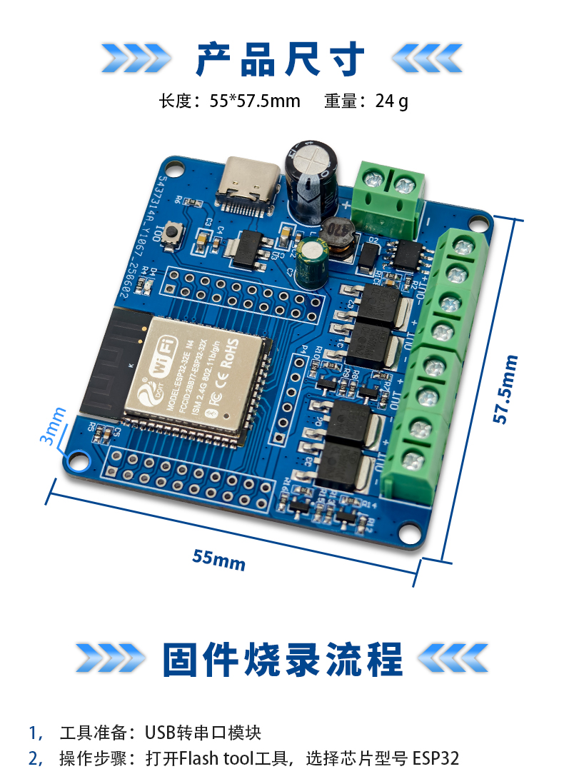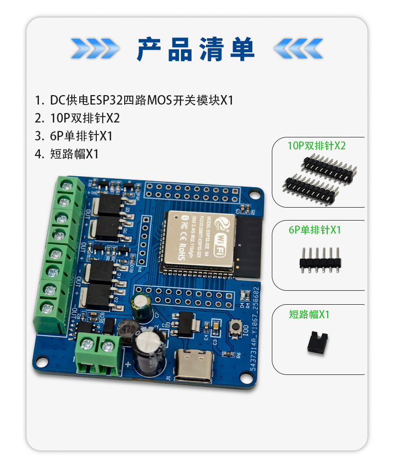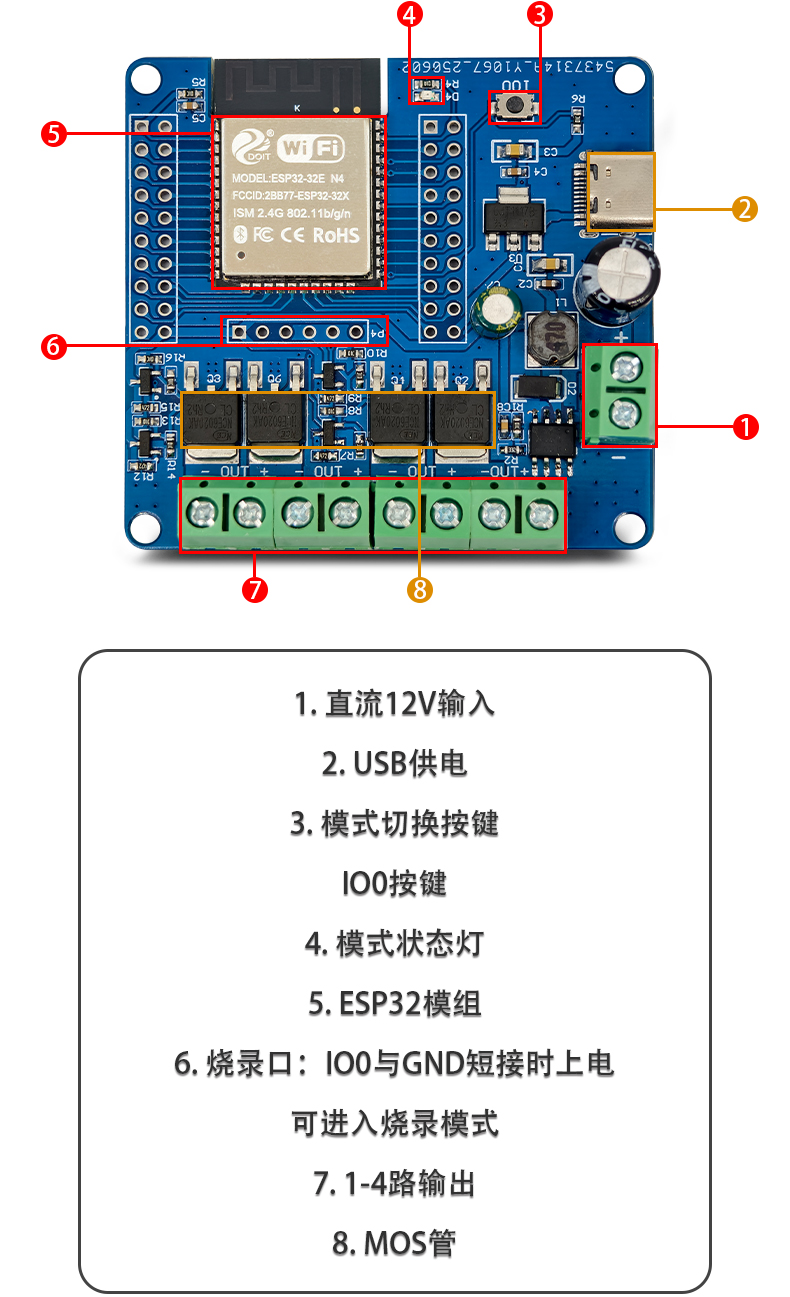 ESP32开发板 四路MOS开关模块 DC5-60V输入输出