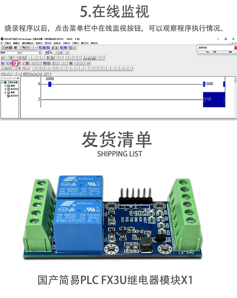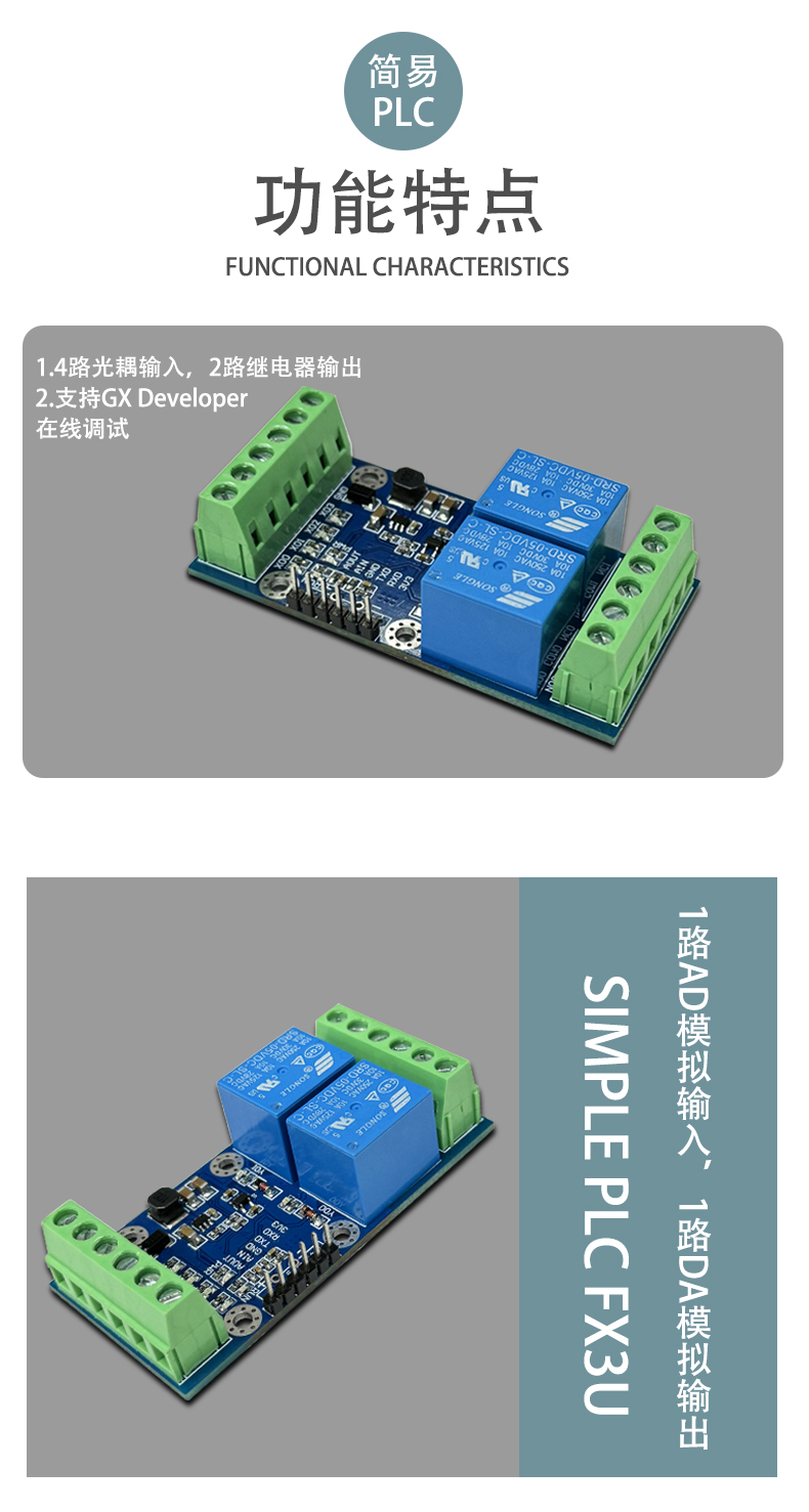 国产简易PLC工控板 兼容三菱FX3U 4路输入 2路继电器输出