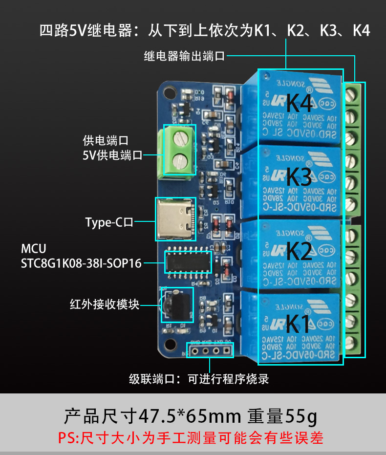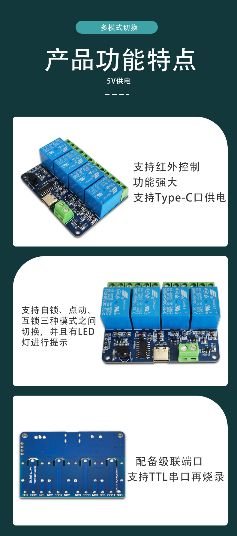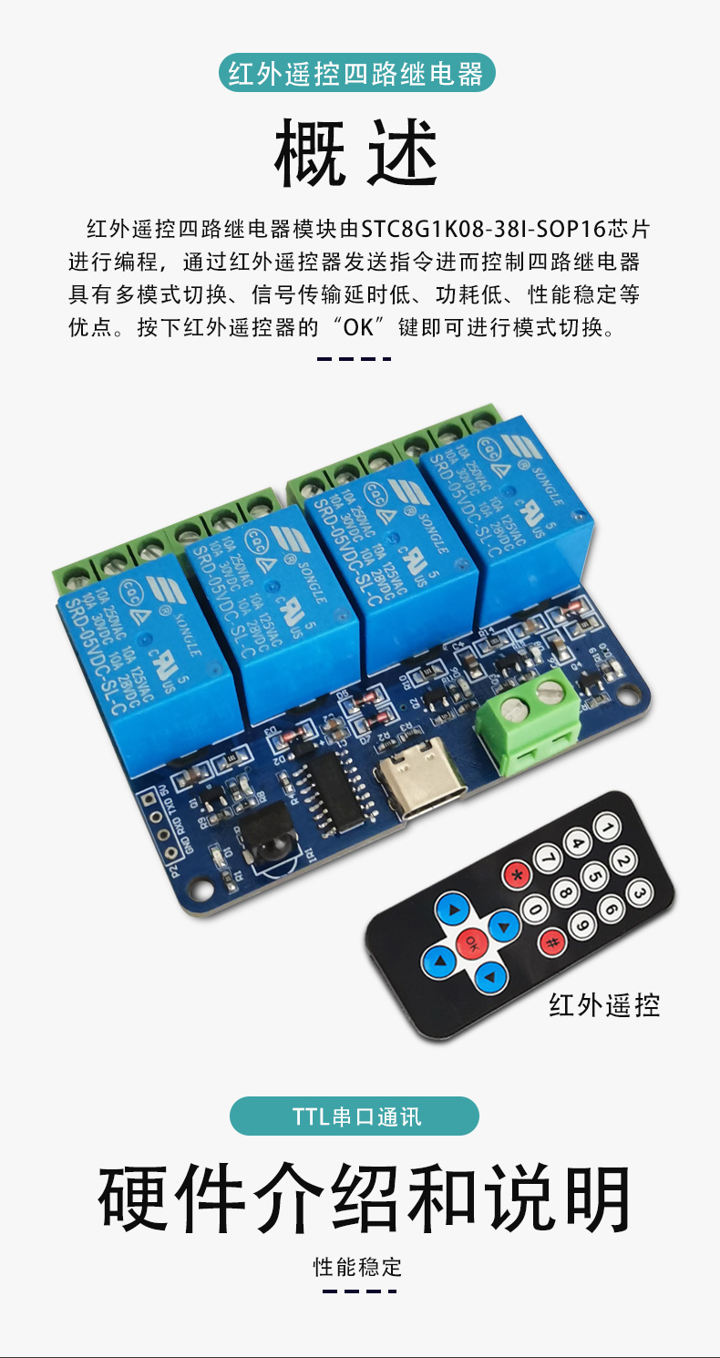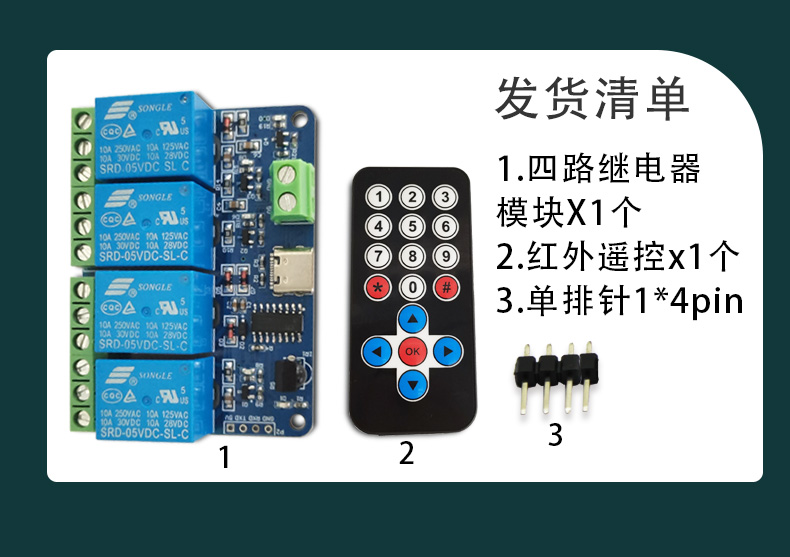 红外无线遥控开关 四路继电器模块 自锁 点动 互锁