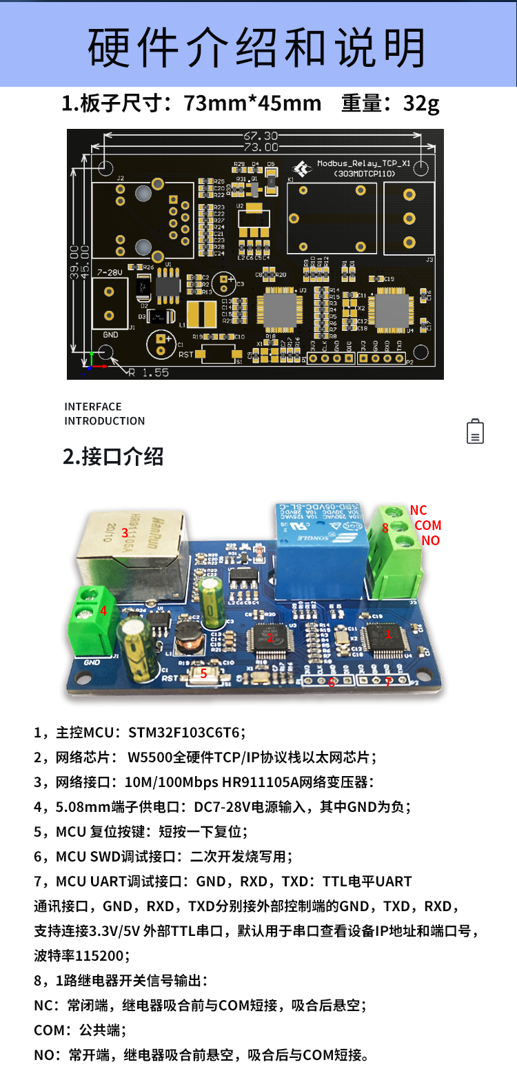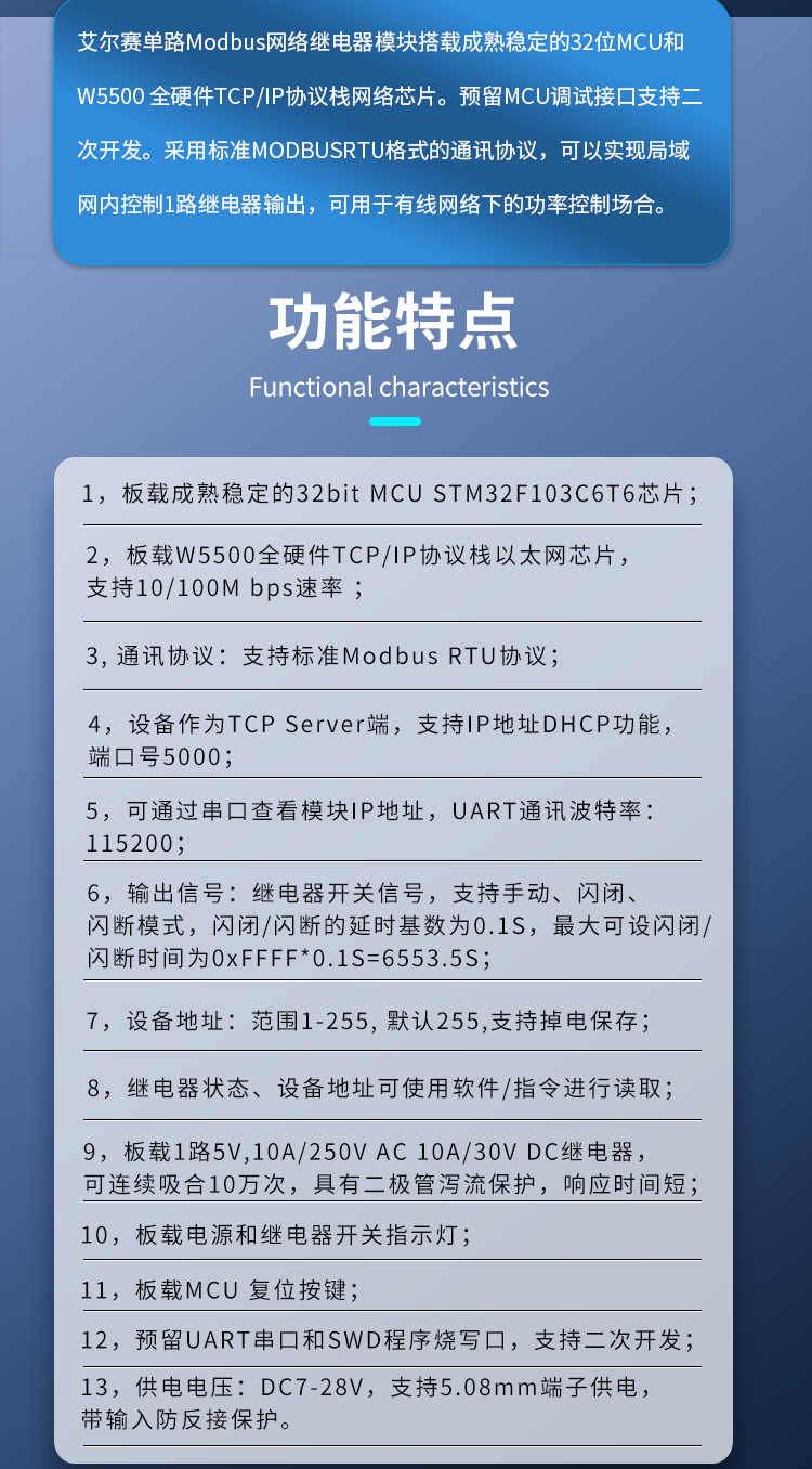 Modbus RTU 单路网络继电器模块 有线以太网 局域网控制 1路输出