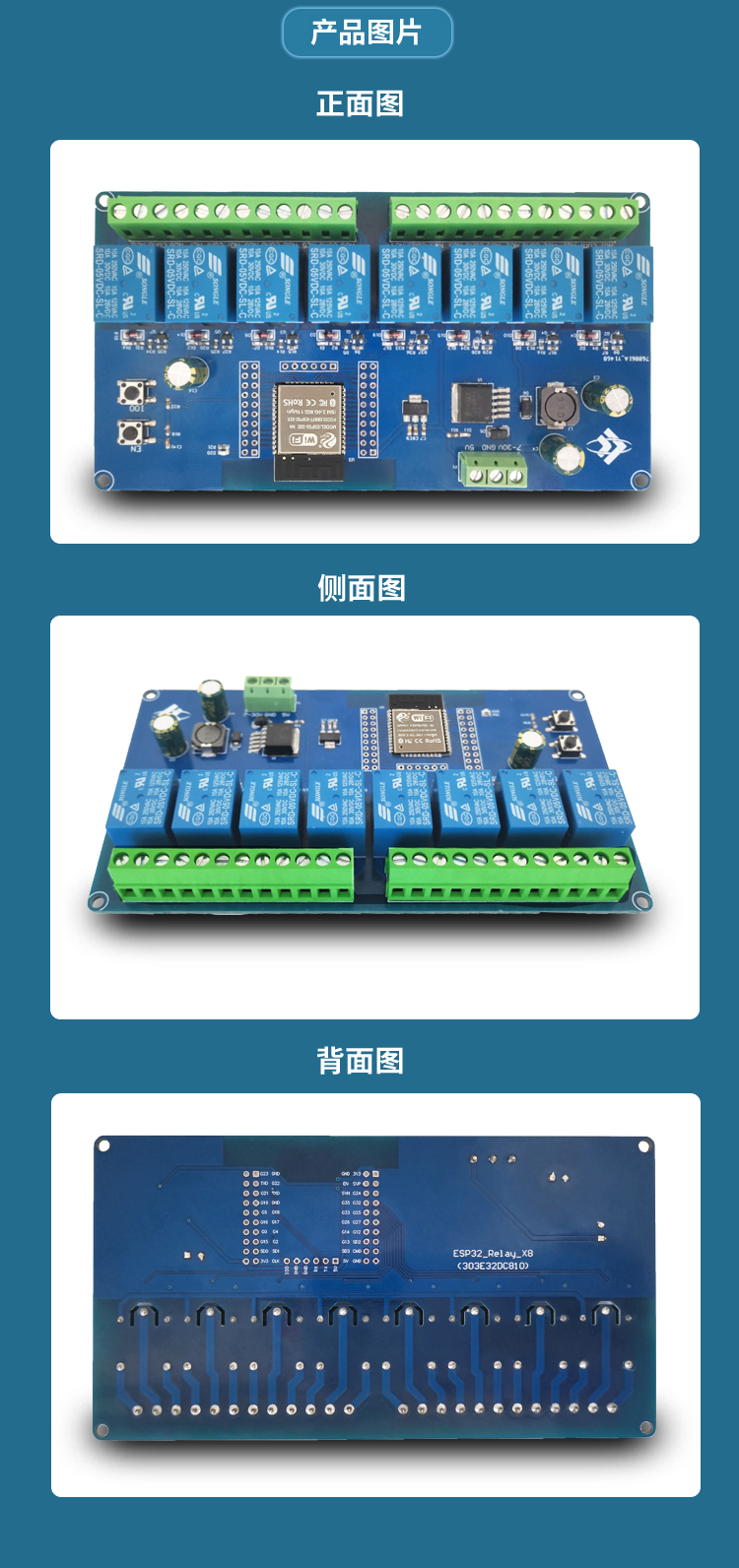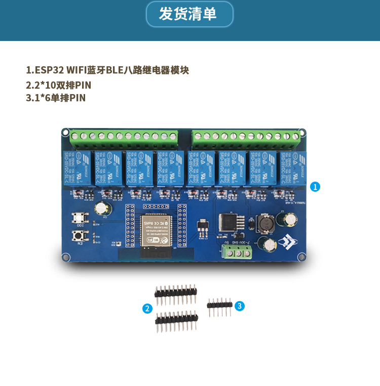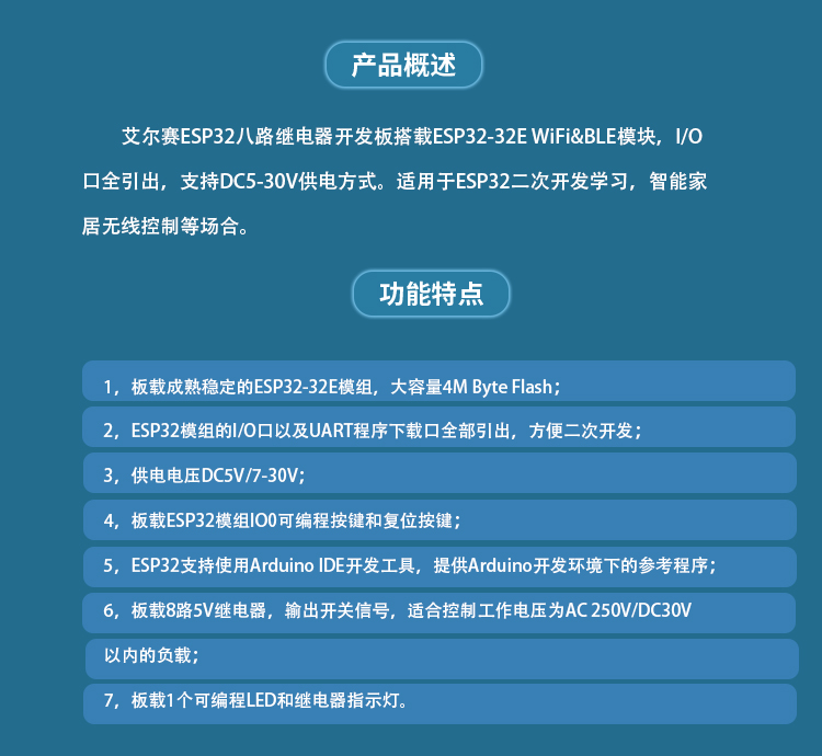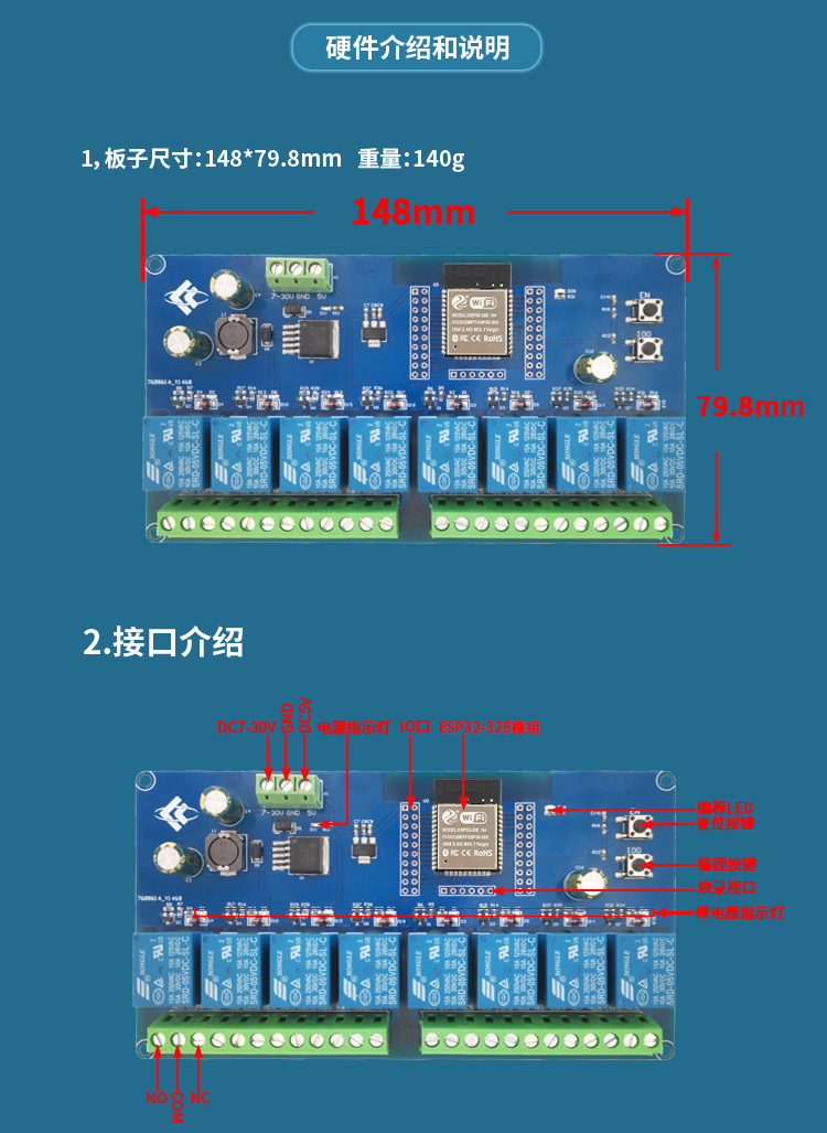 DC5-30V供电 ESP32 WIFI蓝牙BLE八路继电器