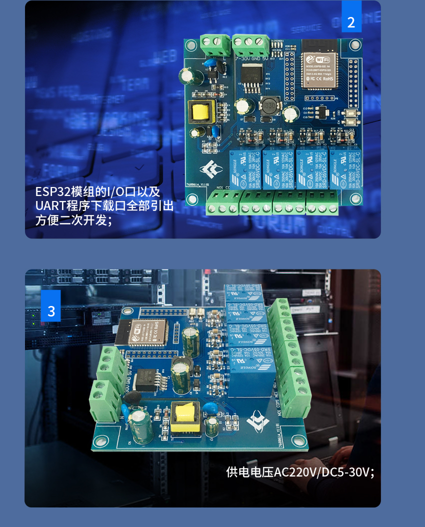 AC/DC供电 ESP32 WIFI蓝牙BLE四路继电器模块
