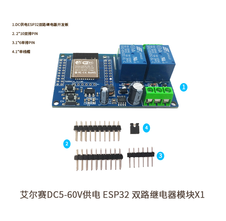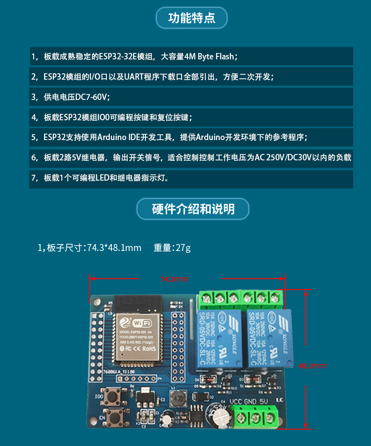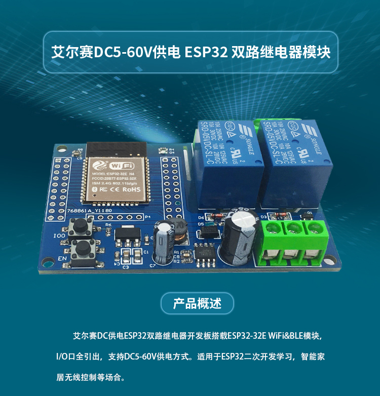DC5-60V供电 双路wifi蓝牙继电器模块