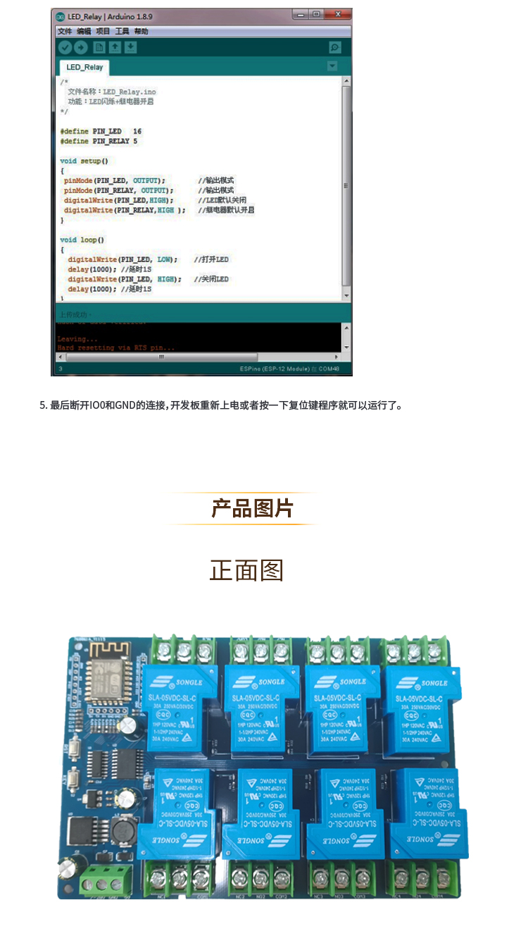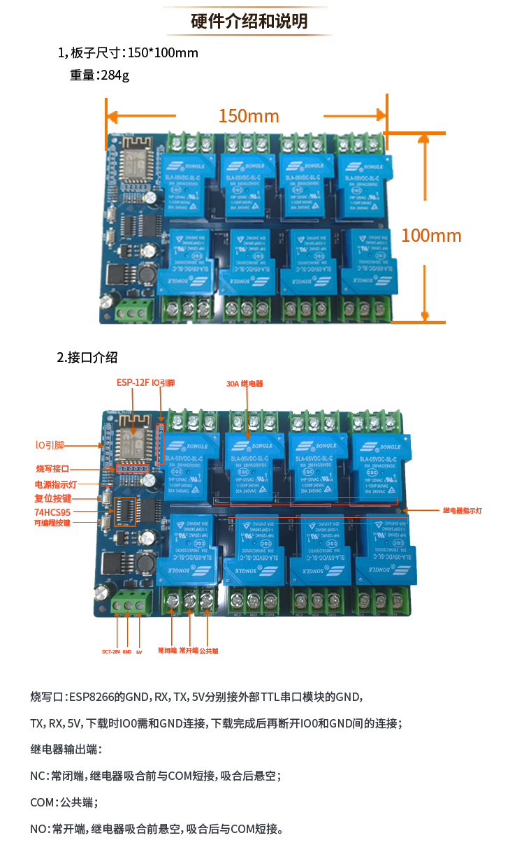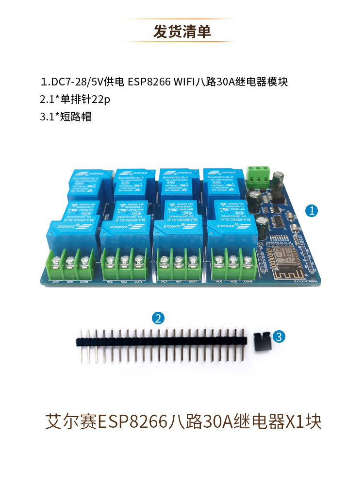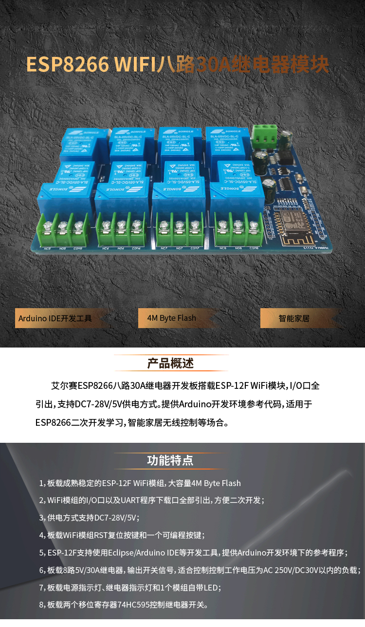 DC7-28/5V供电 ESP8266 WIFI八路30A继电器模块 ESP-12F开发板