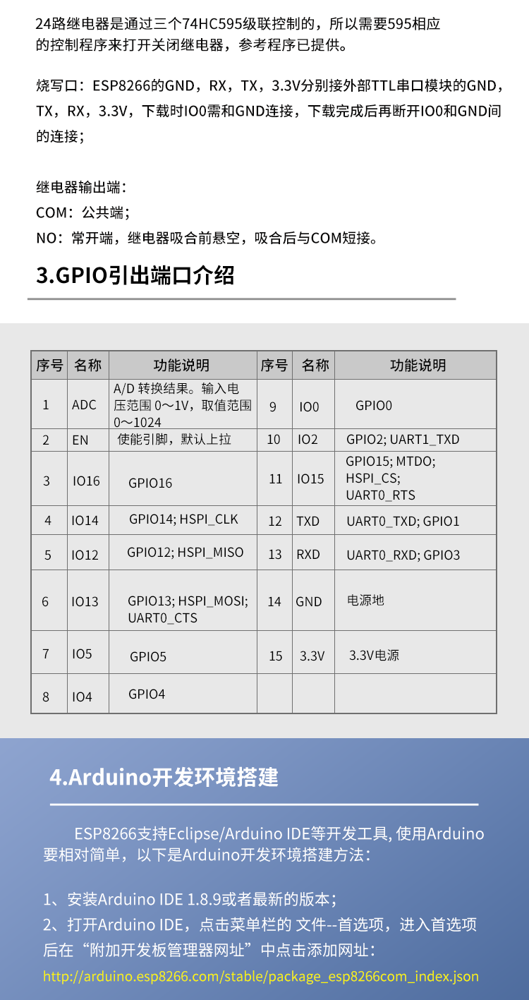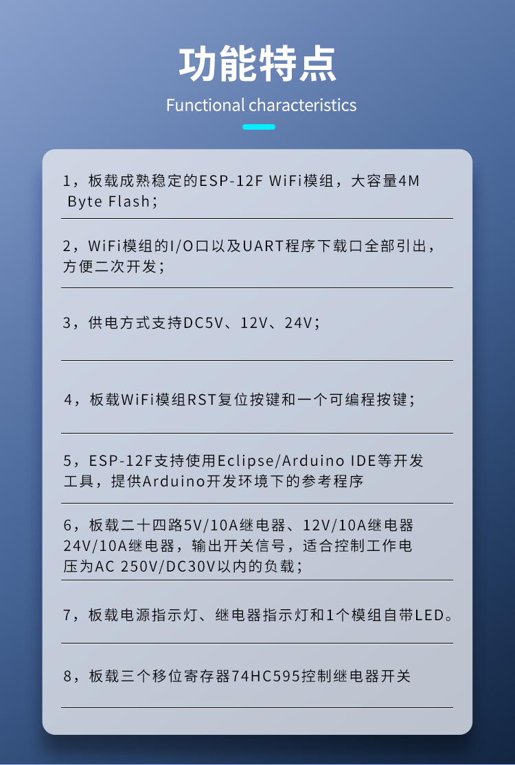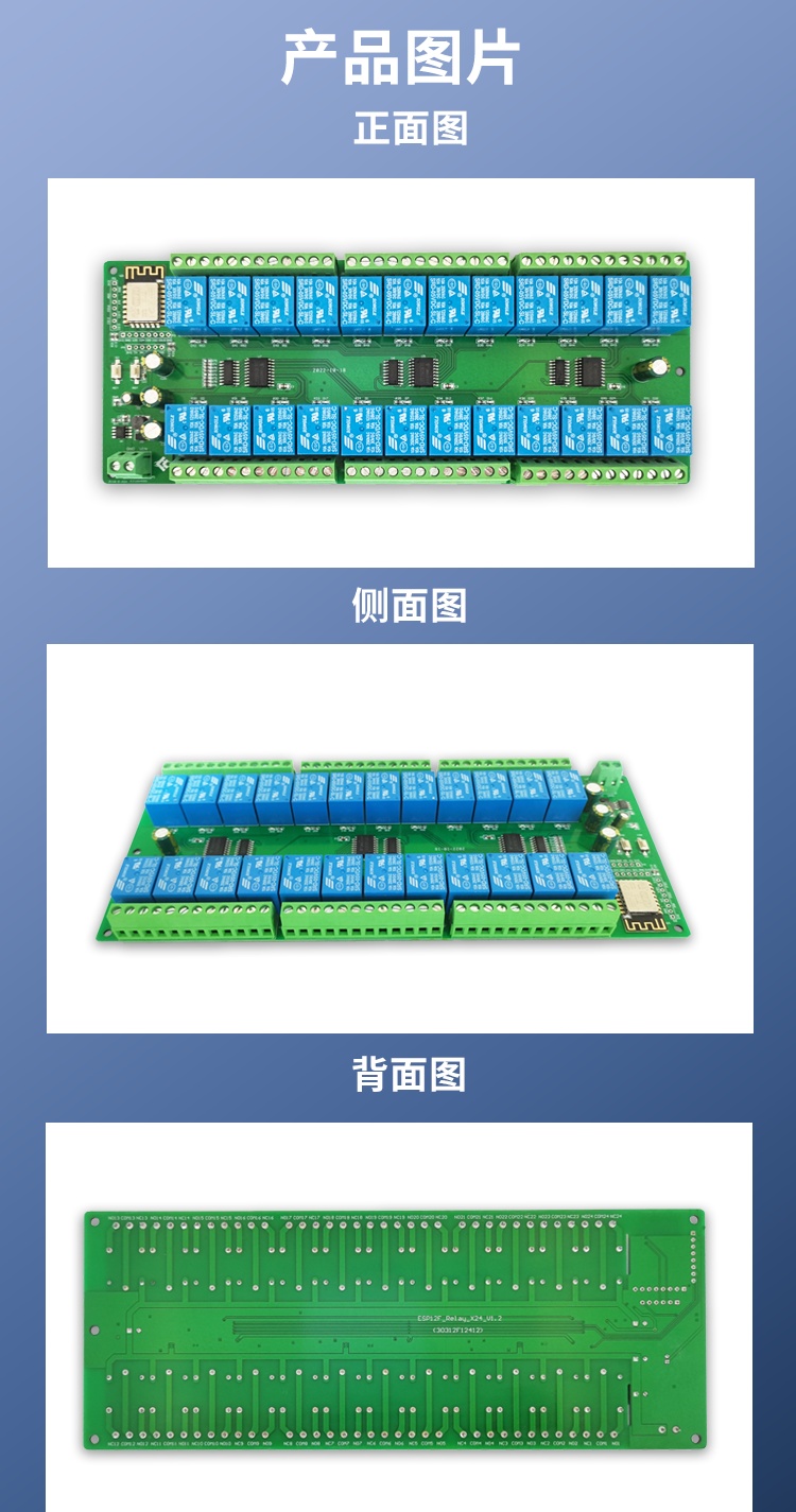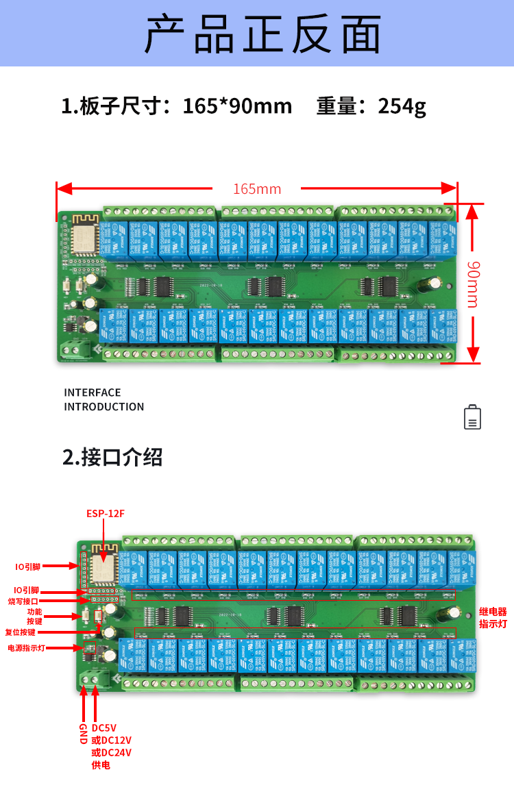 DC供电 ESP8266WIFI二十四路5V/12V/24v继电器模块ESP-12F开发板