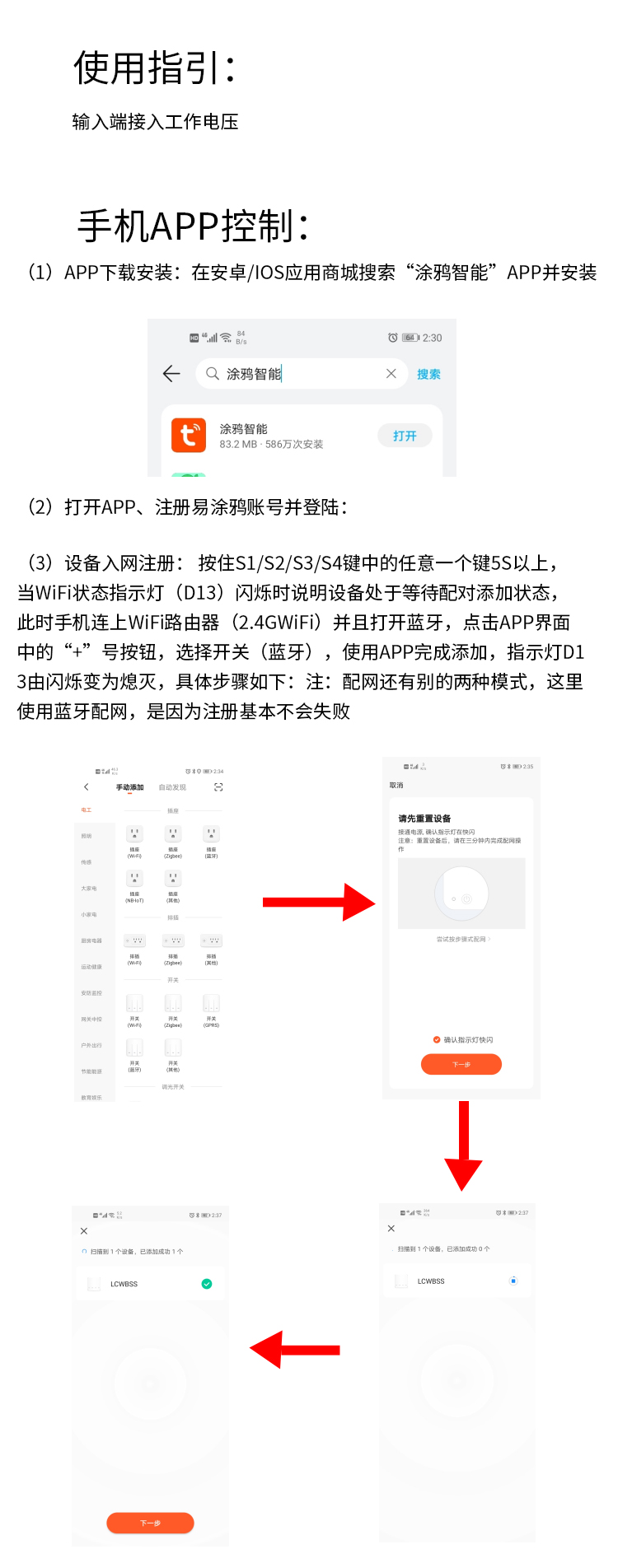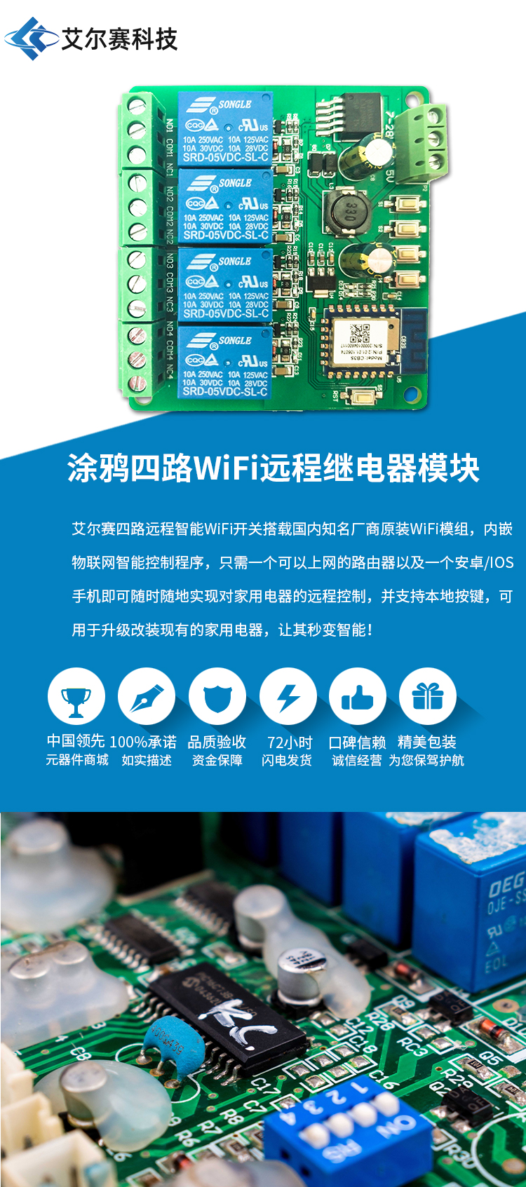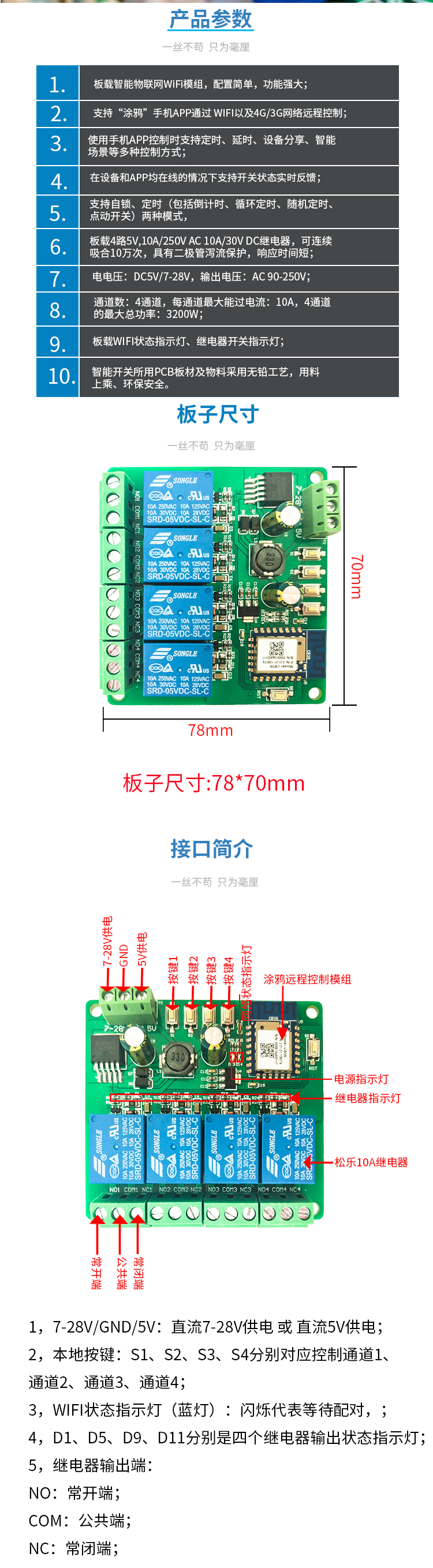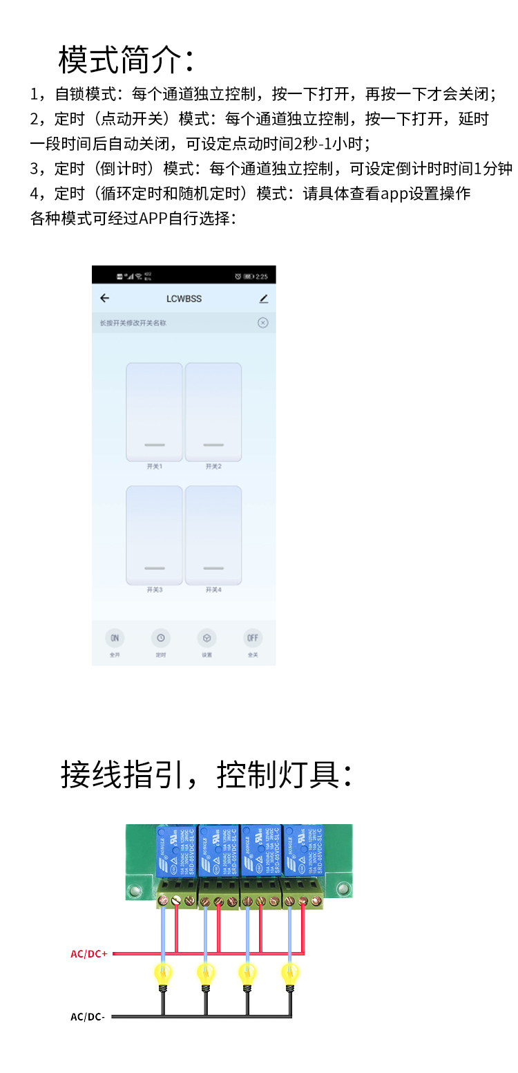 涂鸦四路WiFi蓝牙远程继电器模块 手机APP控制开关点动自锁定时