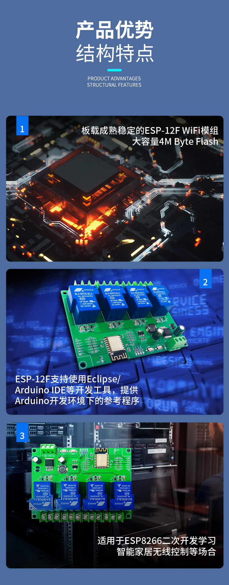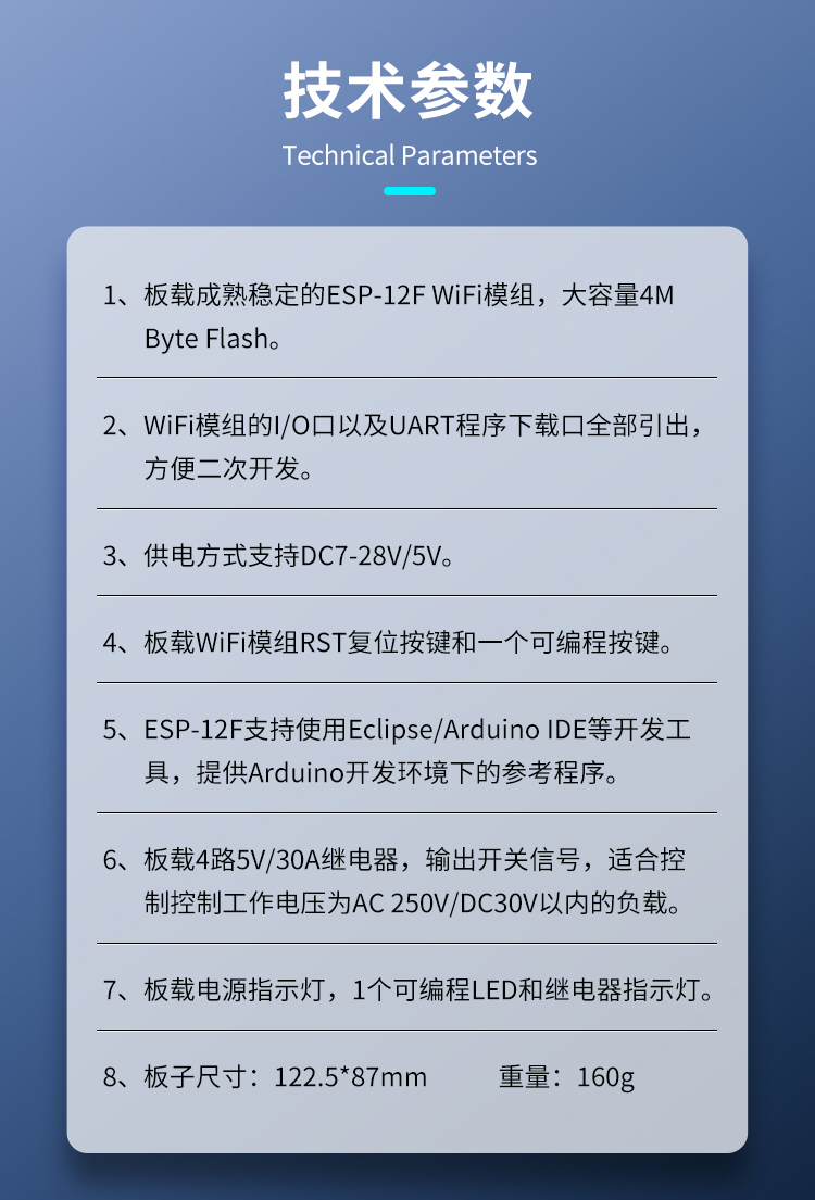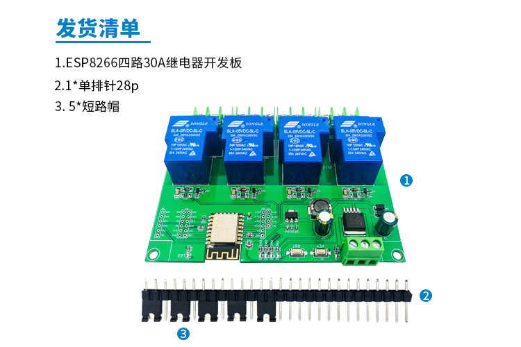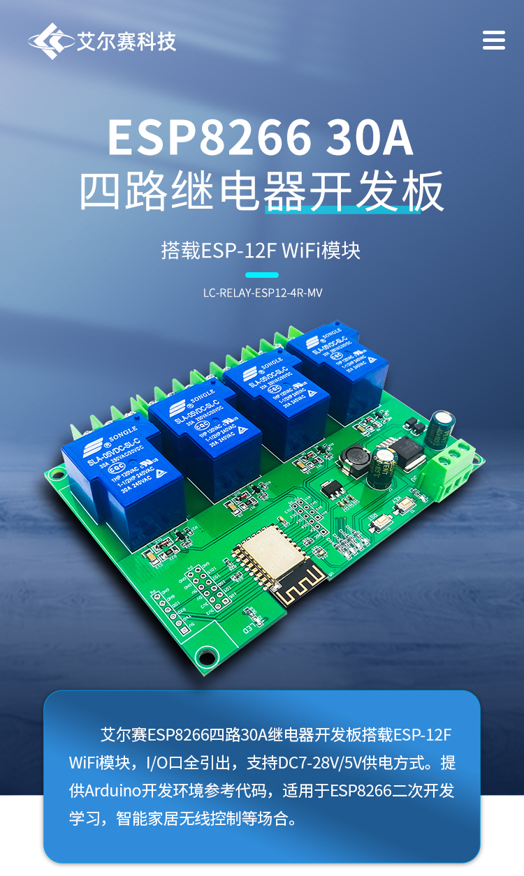 DC7-28/5V供电ESP8266WIFI四路30A继电器模块ESP-12F开发板二次开