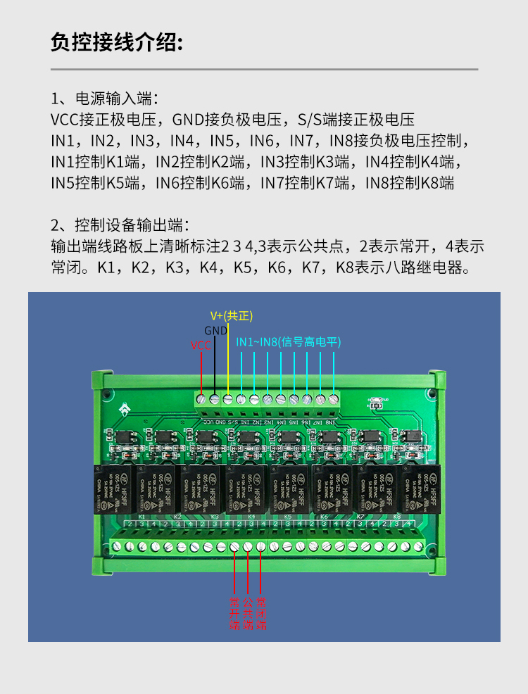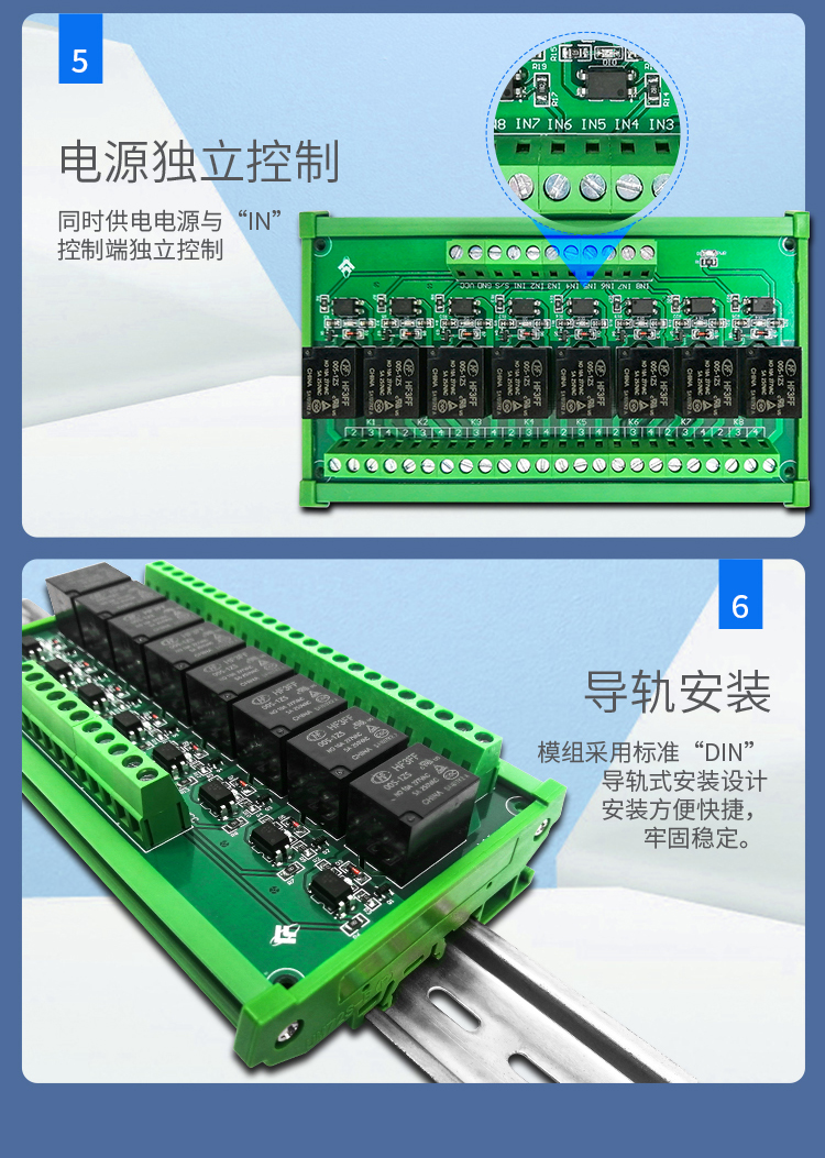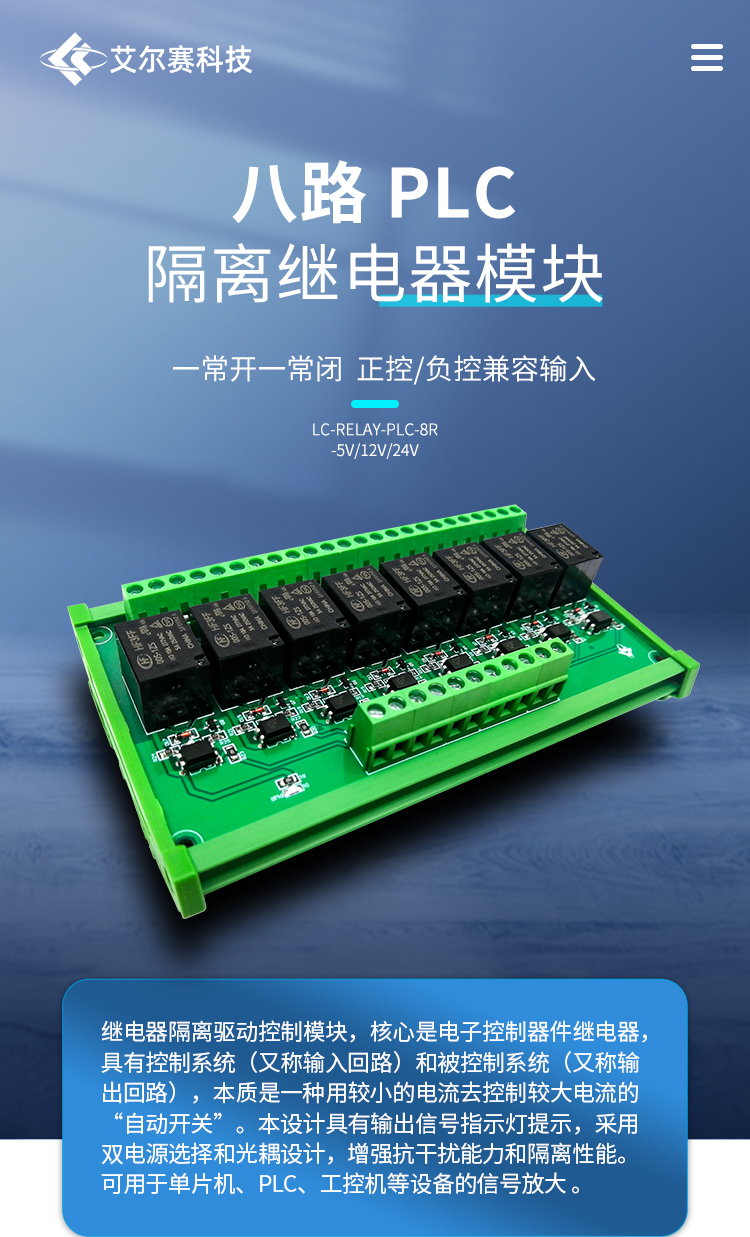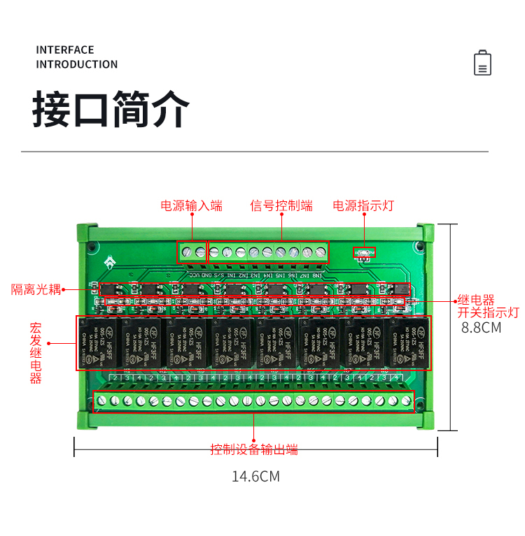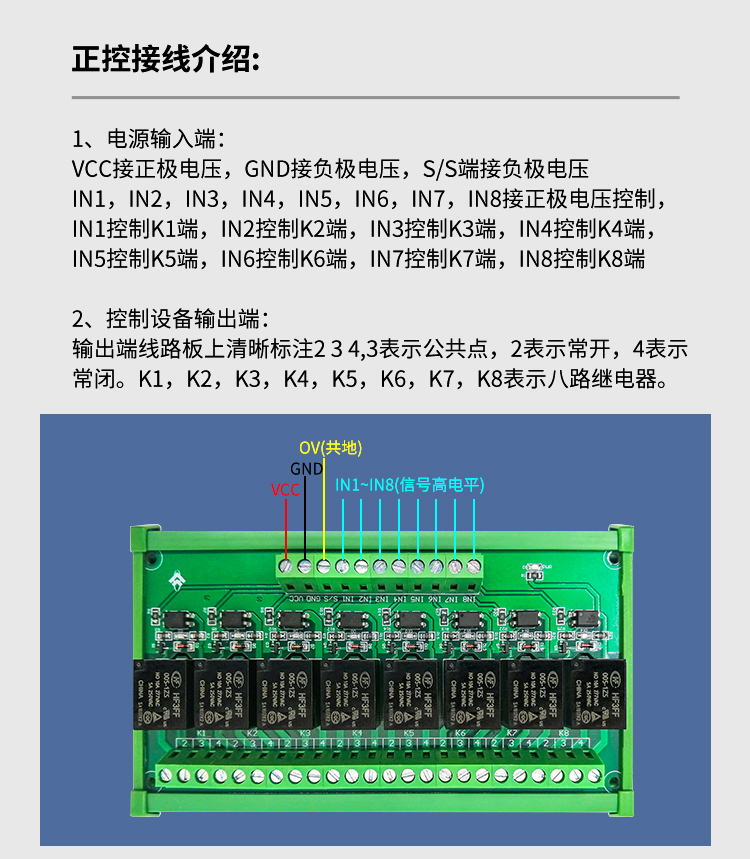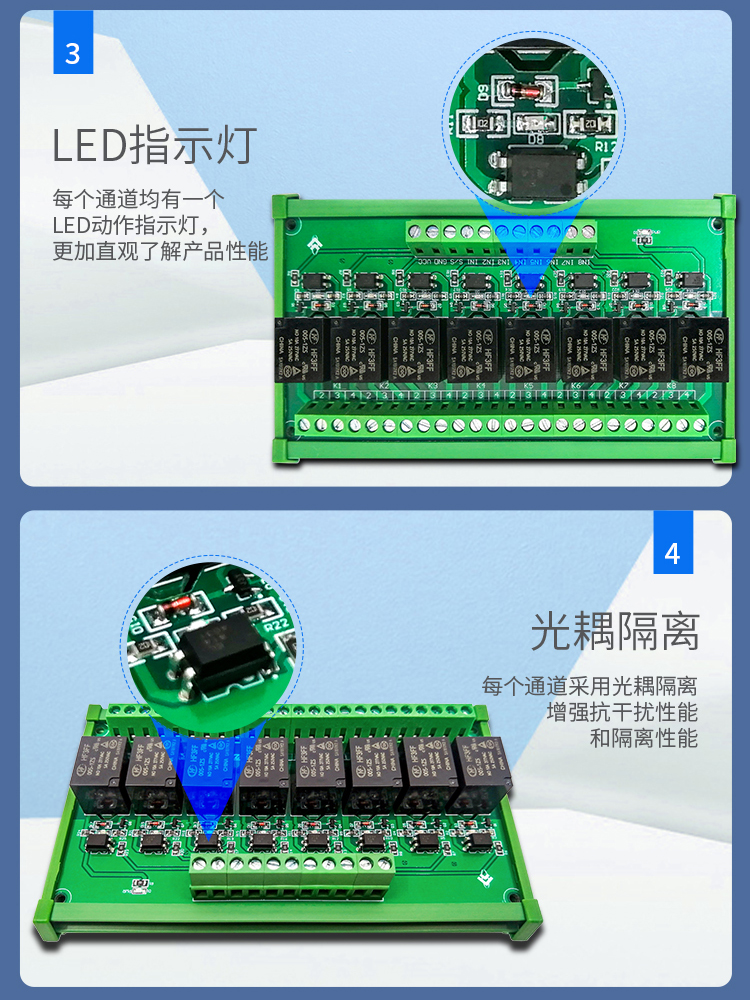 8路5V/12V/24V高低电平光耦隔离继电器控制模块单片机PLC放大板