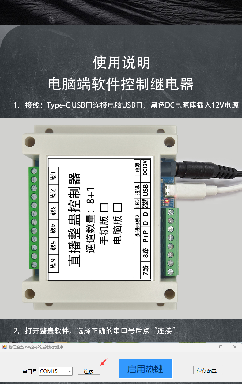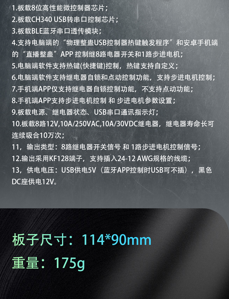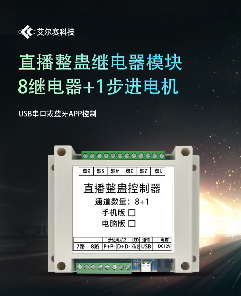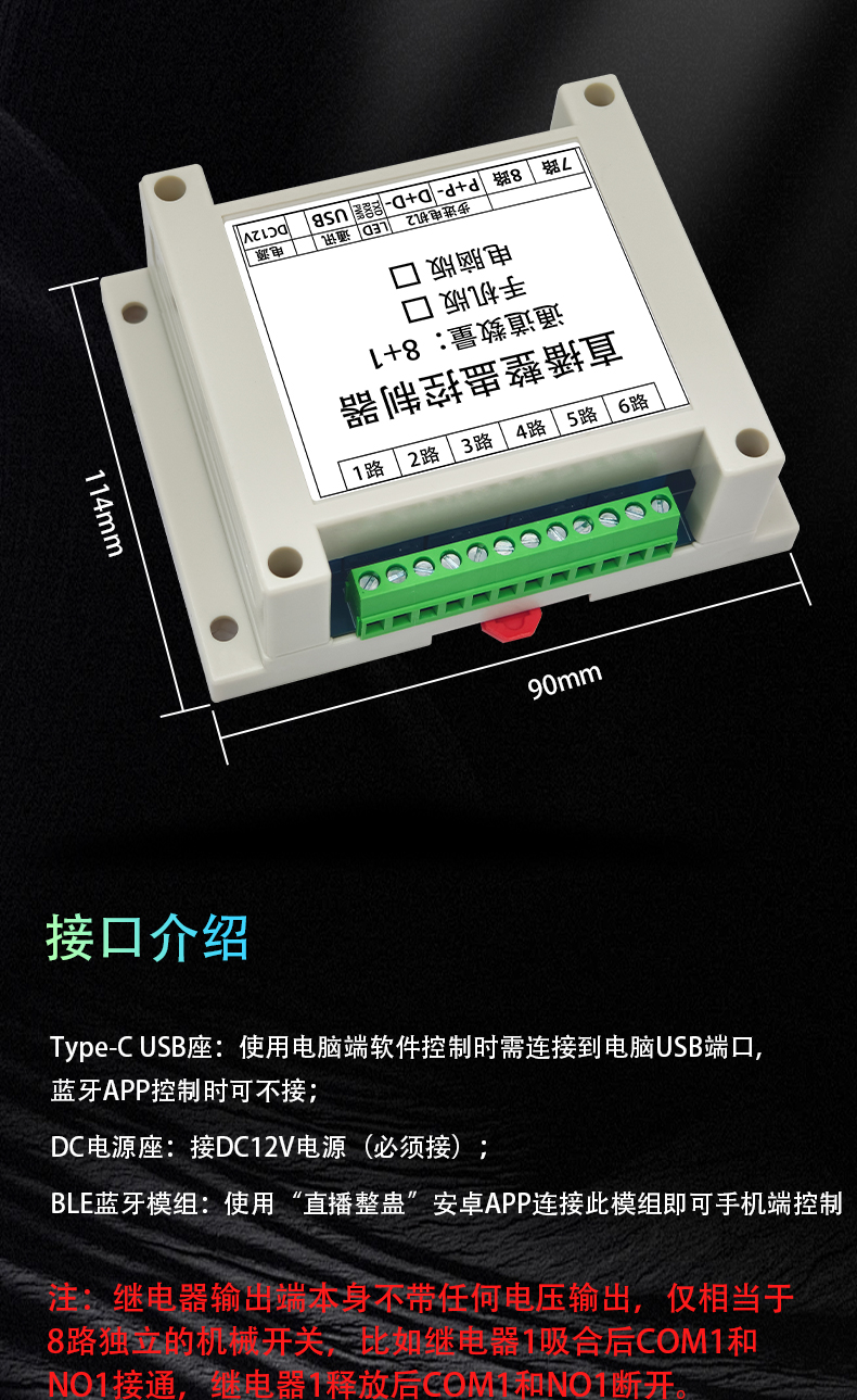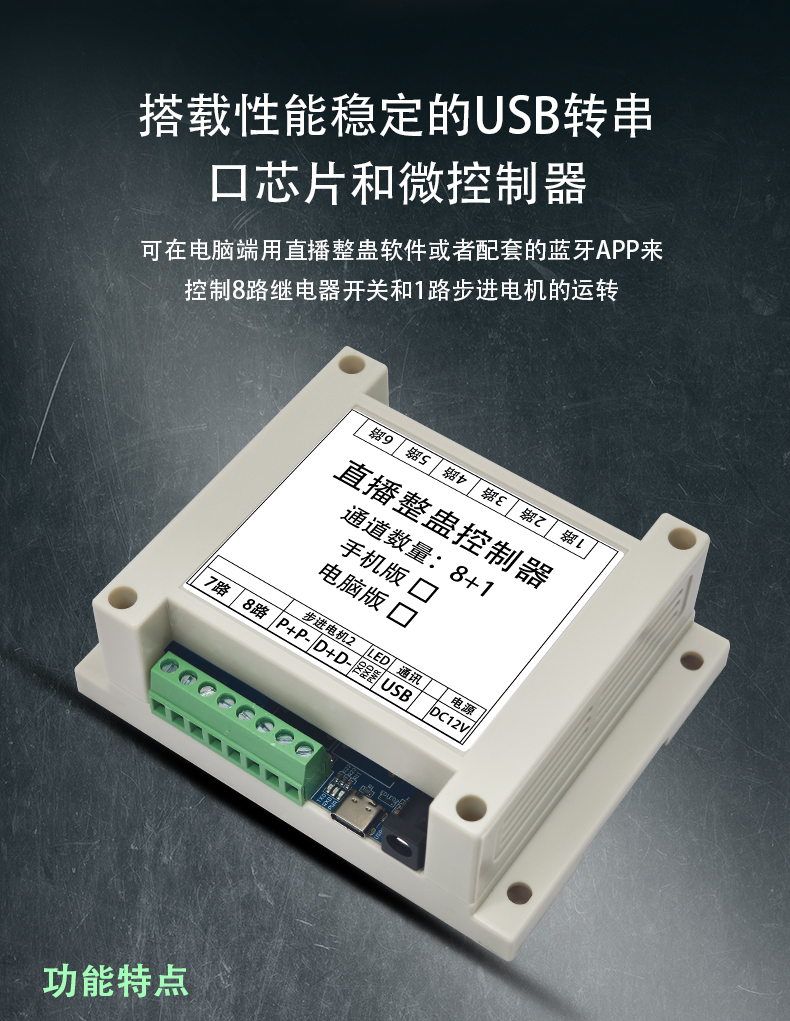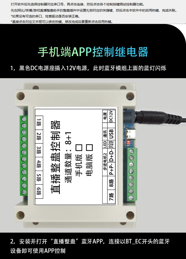 LCUS 10路直播整蛊继电器模块/USB串口或蓝牙APP控制/8DO+1M