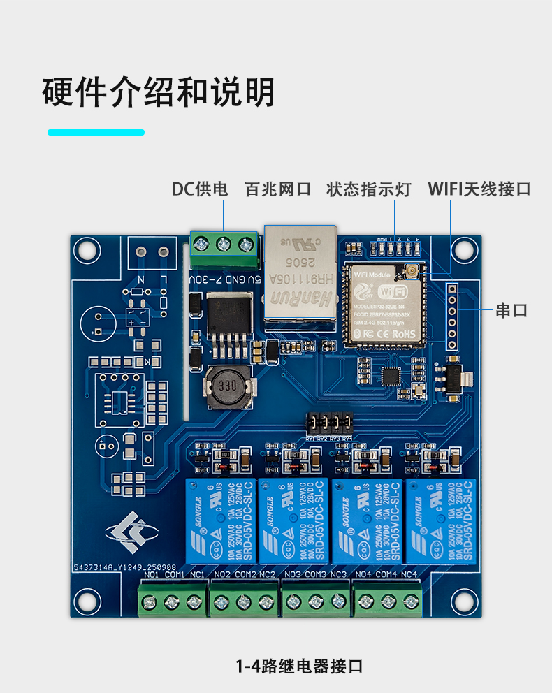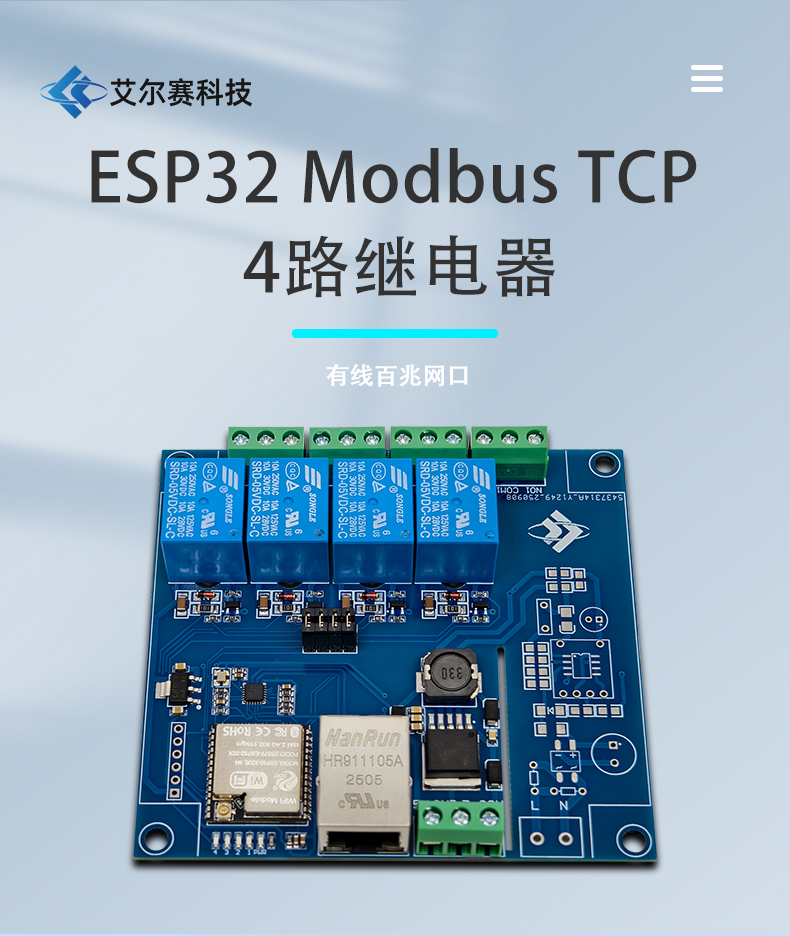 ESP32 Modbus TCP 四路继电器模块 有线/WIFI 开发板 7-24V供电