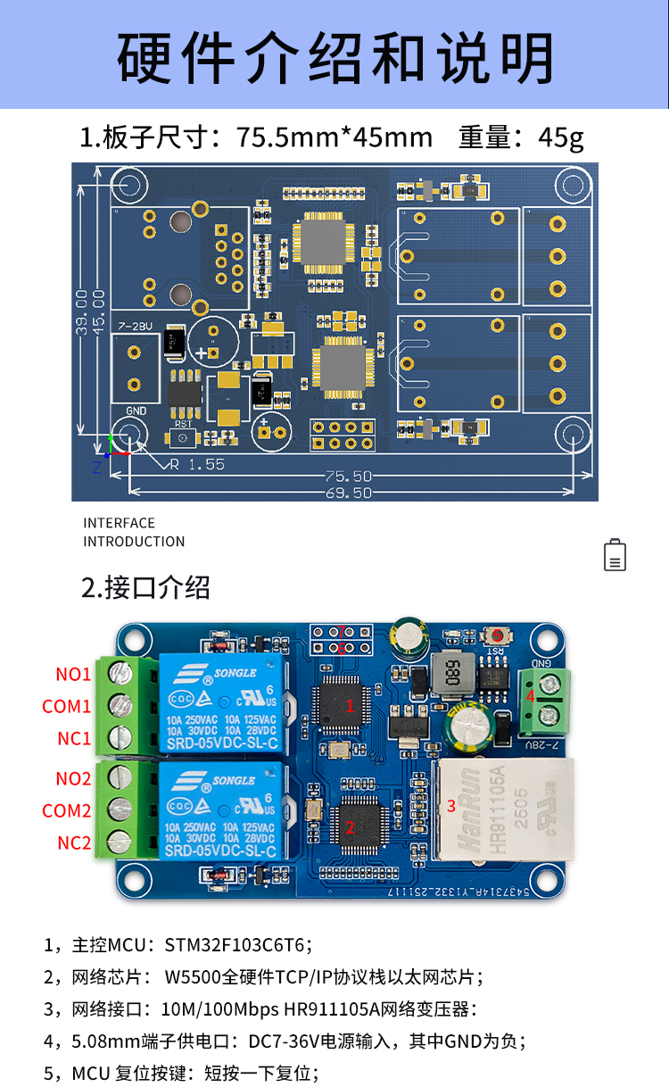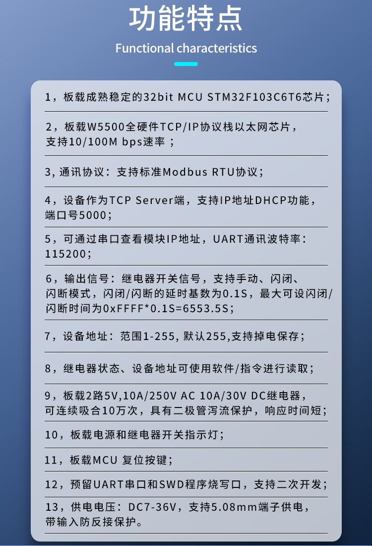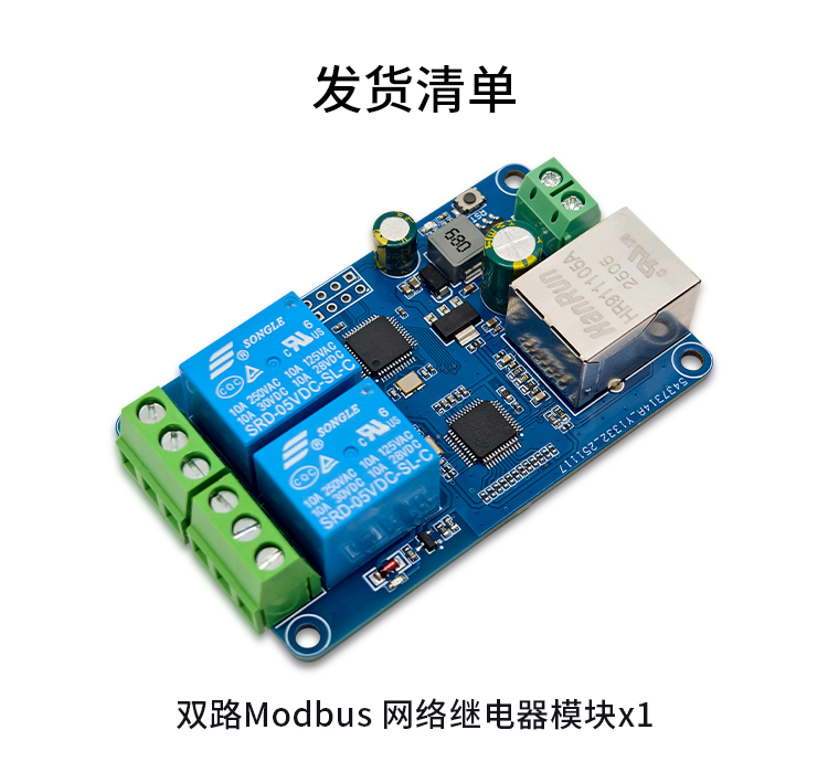 Modbus RTU 双路网络继电器模块 有线以太网 局域网控制 2路输出