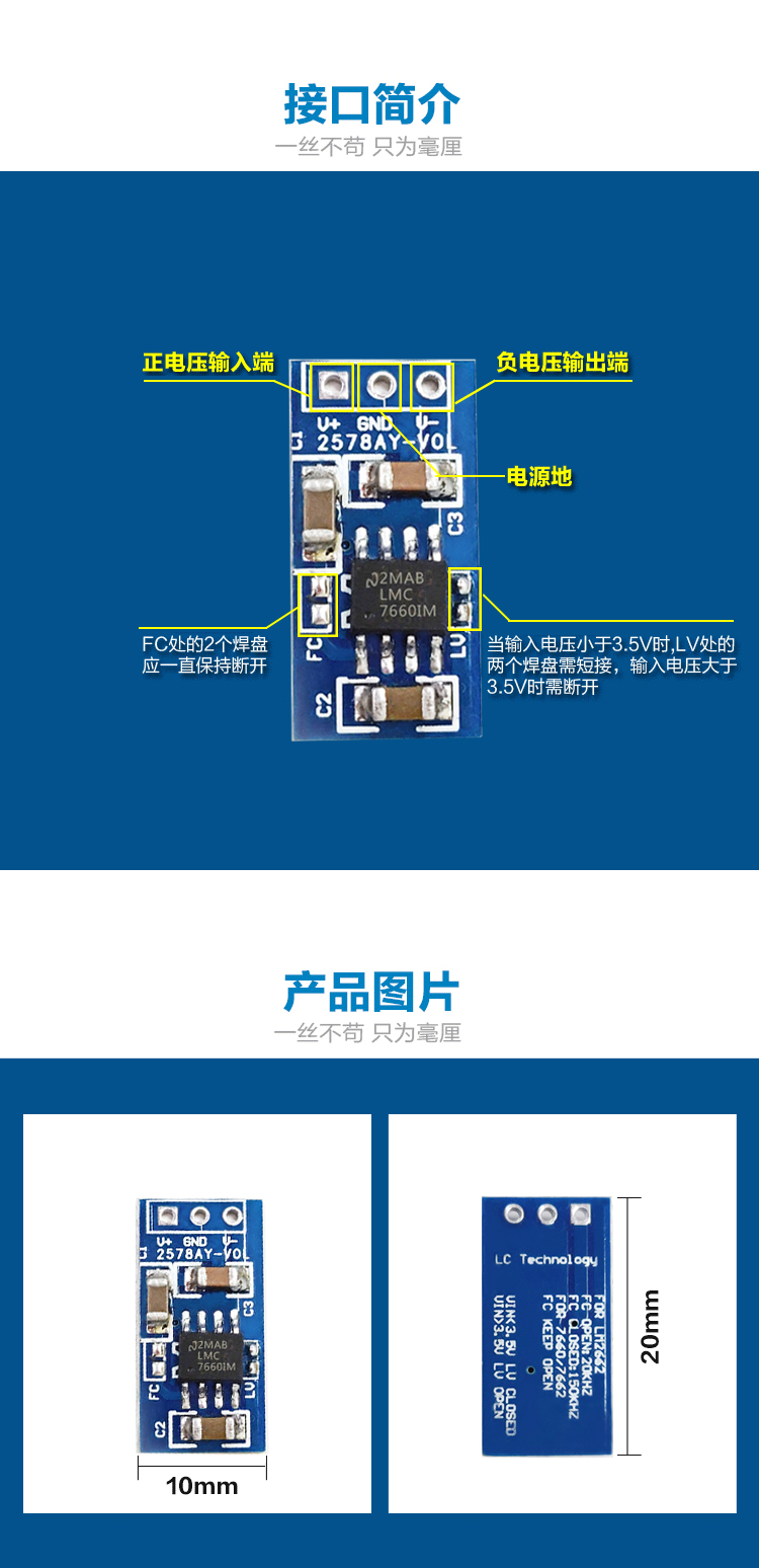 LM7660开关稳压器 正压转负压 电压反转模块