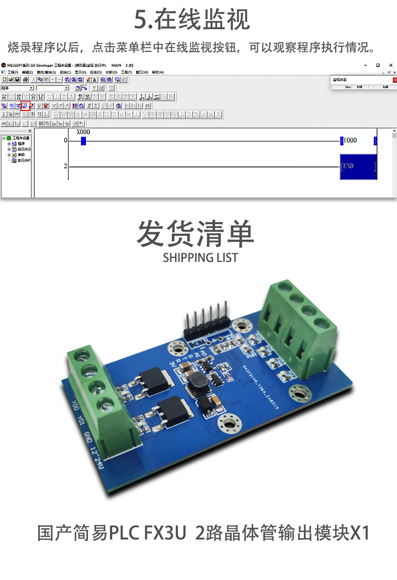 国产简易PLC 兼容三菱FX3U 延时模块 6MT 4进2出 晶体管版本