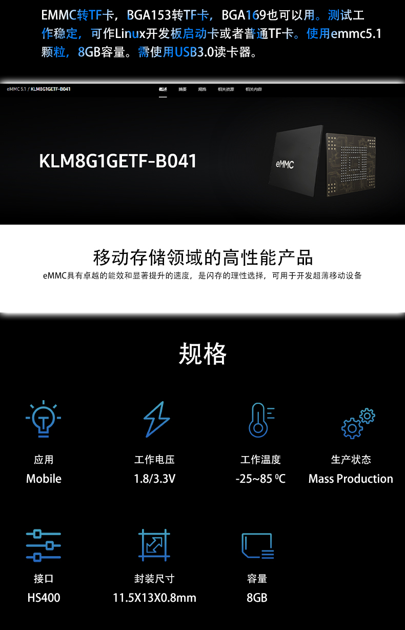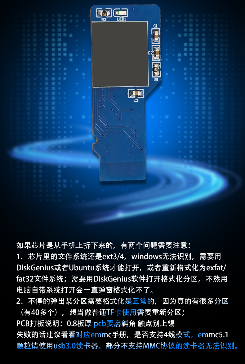 EMMC转TF卡模块 BGA153 BGA169 转Micro SD卡MMC卡